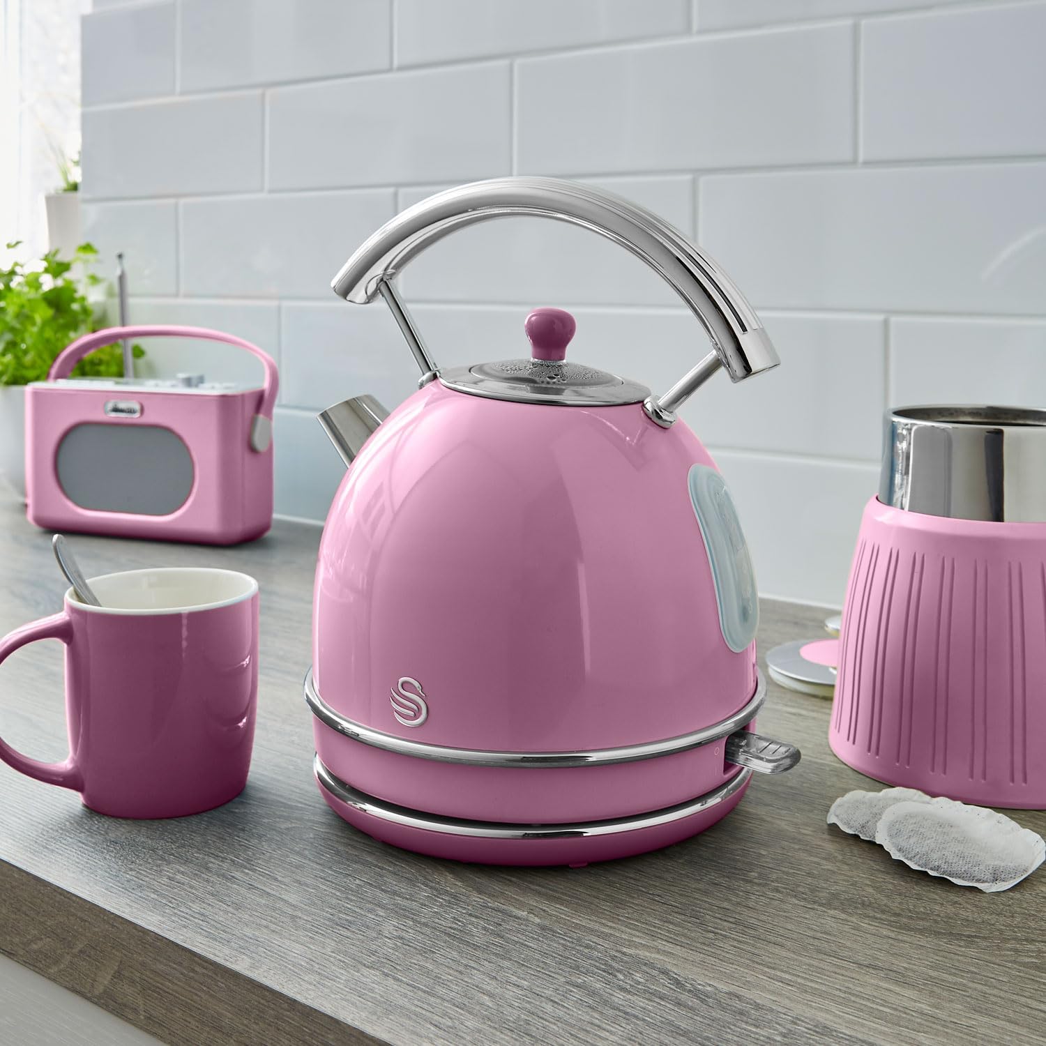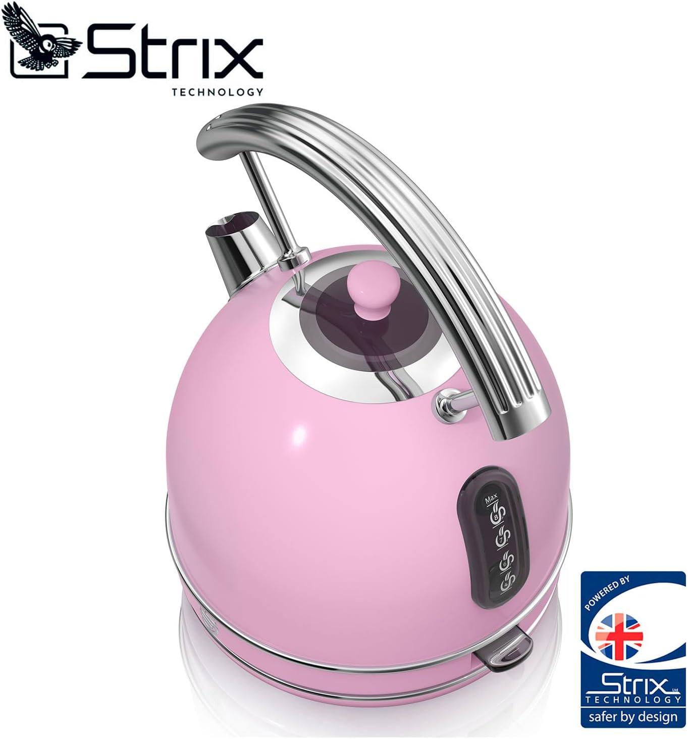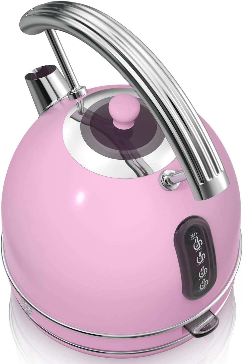 - VINTAGE DESIGN: Der Wasserkocher zeichnet sich durch sein elegantes Retro-Design aus, das jeder Küche einen Hauch von Stil verleiht. Es hat einen Schalter, der leuchtet, wenn das Gerät in Betrieb ist.