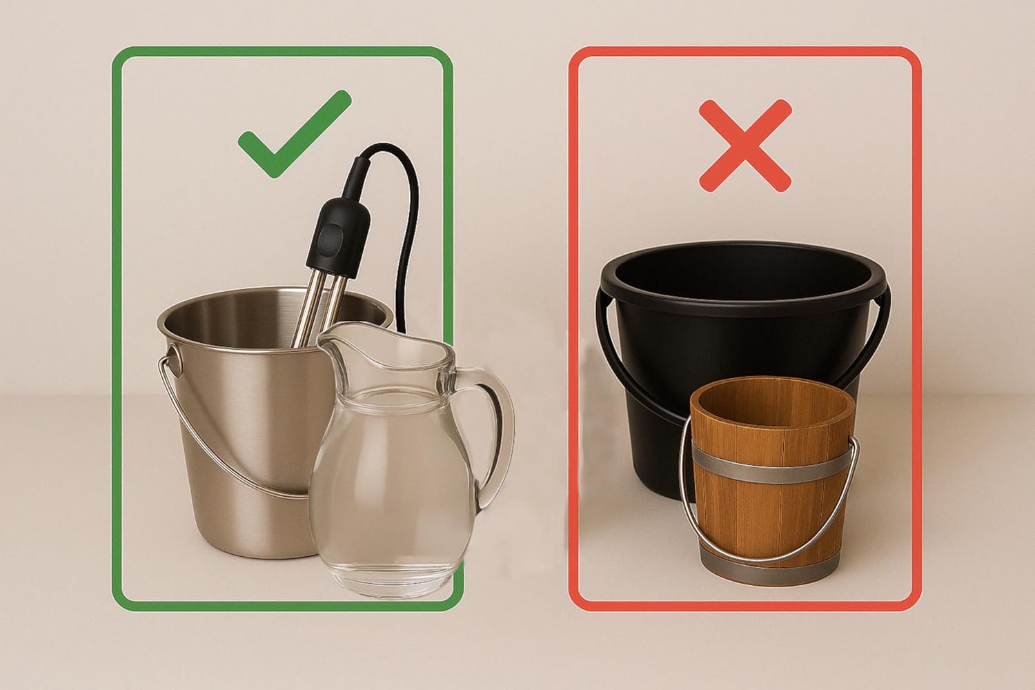 - AUFMERKSAMKEIT! Diese Tauchsieder ist nicht geeignet für kochendes Wasser in kleinen Behältern wie Glas oder eine kleine Tasse.