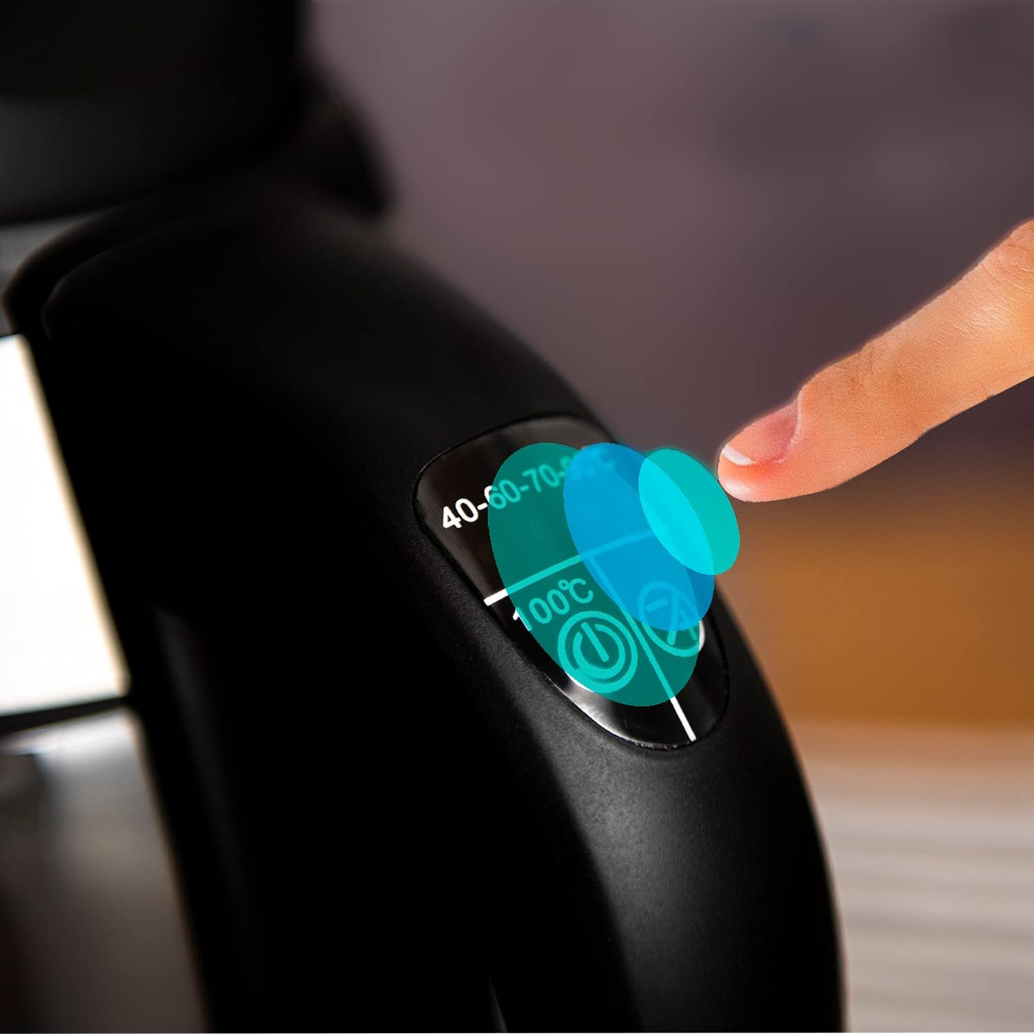- FUNKTIONALES DESIGN: 360° Grad Anschluss-Sockel zum Abstellen der Kanne von allen Seiten; fünfstufige Temperaturwahl mit 40° Grad für Babynahrung, 60° und 70° für Tee, 90° für Filterkaffee und sprudelnde 100° Grad für Suppensnacks.