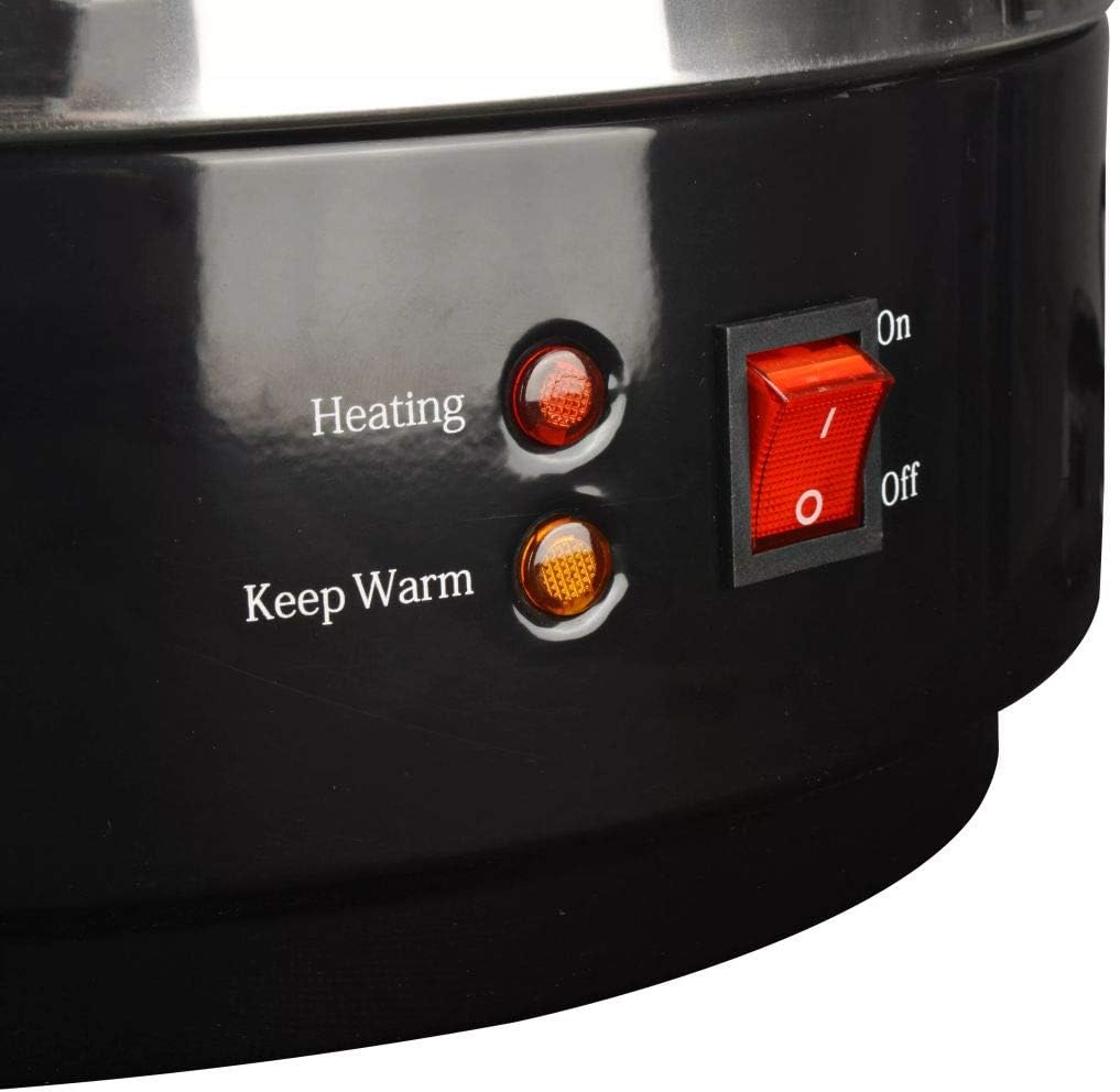 - Er ist ideal für professionelle Caterer und für den täglichen Gebrauch geeignet.Dieser Weinwärmer ist mit einem zwischen 30 °C und 110 °C einstellbaren Temperaturregler und einem eingebauten Hahn zum einfachen Servieren von Glühwein und anderen