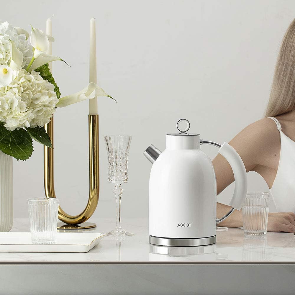 - ☕【Hervorragende Ergänzung für Ihre Küche】 - Im modischen Retro-Design sieht unser Wasserkocher auf Ihrer Küchenzeile besonders gut aus und überrascht mit einer blauen LED-Leuchte. Ohne den Sockel ist der Teekessel komplett kabellos und er