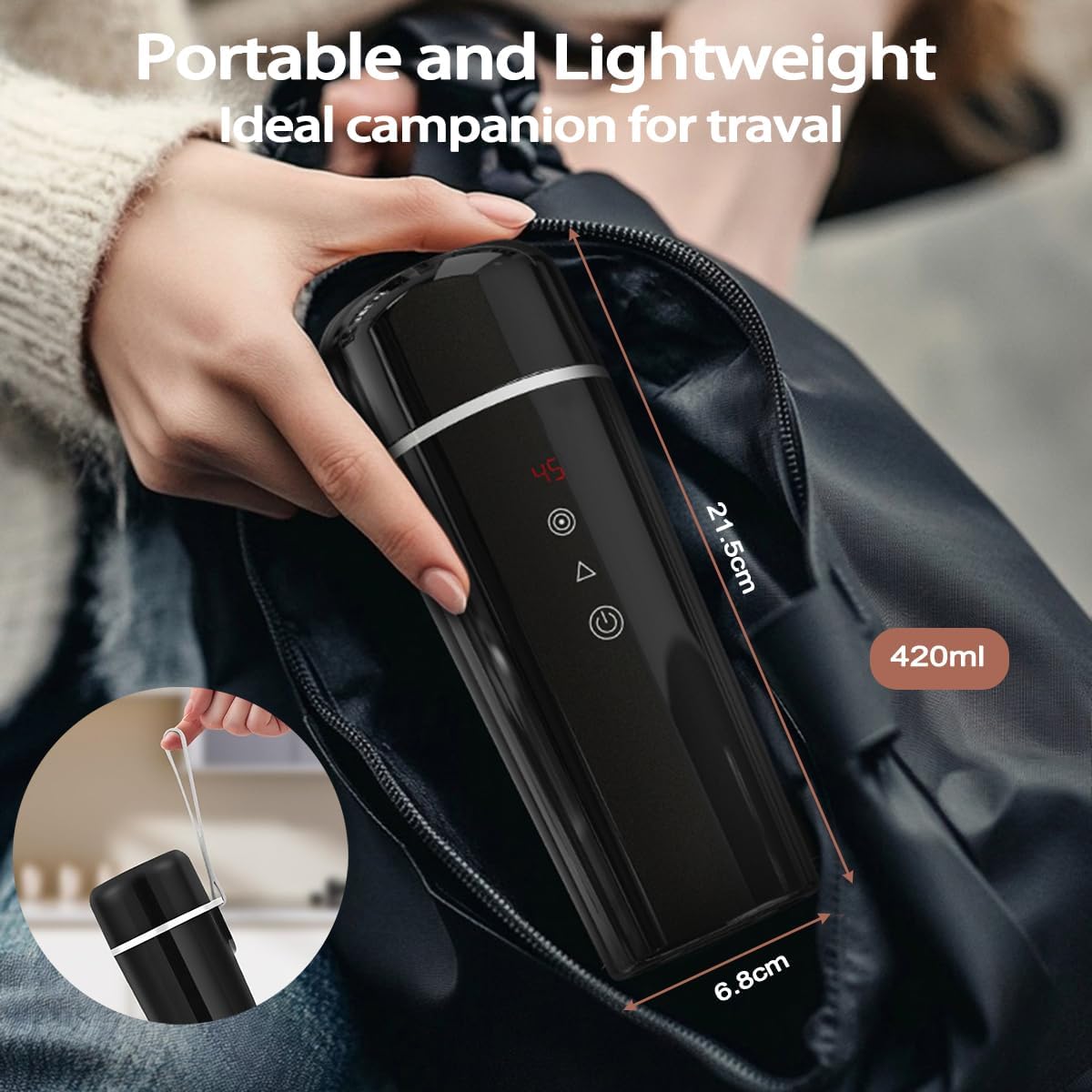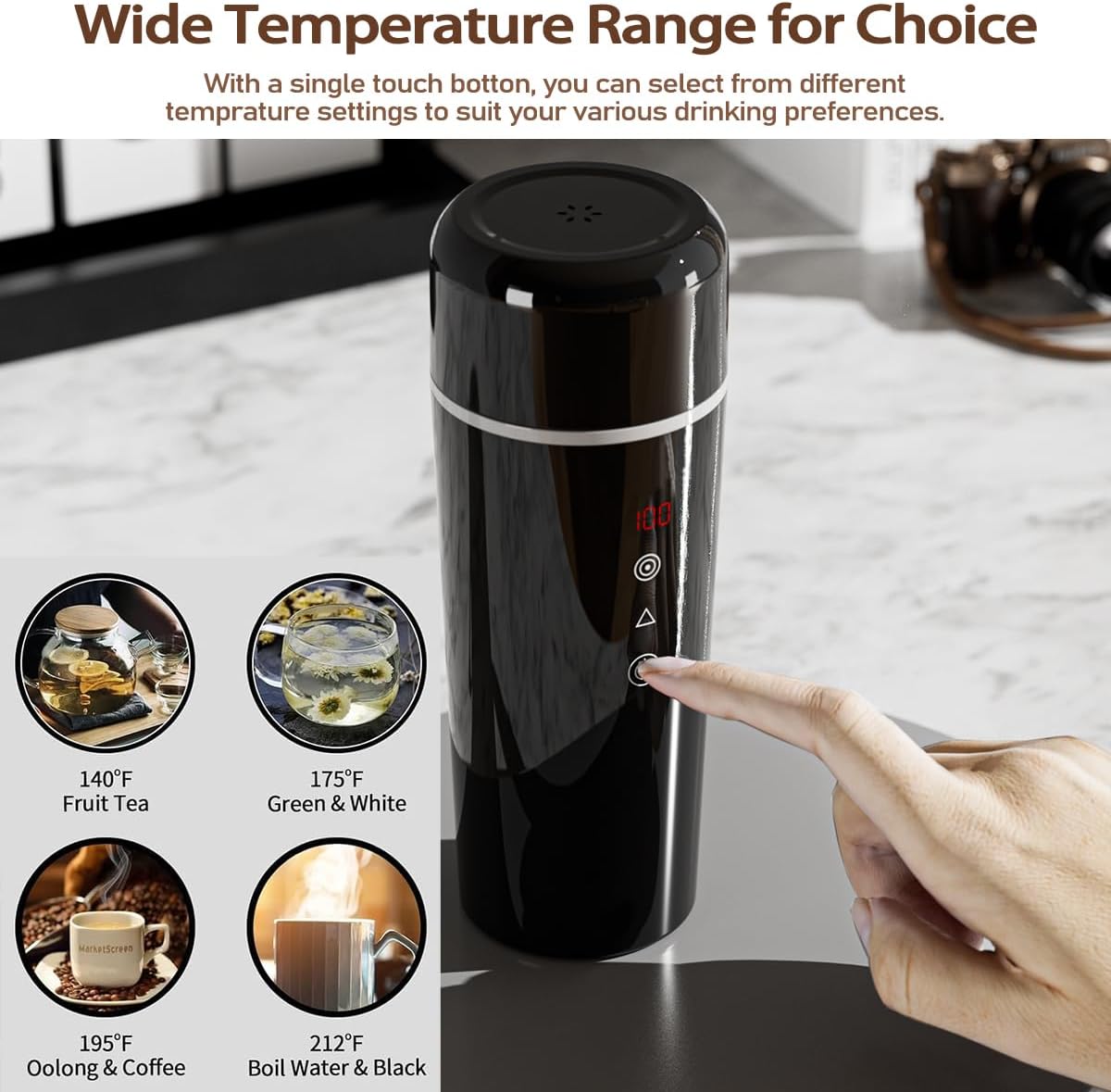 - Wasserkocher Cup mit Intelligenter Temperaturkontrolle: Unser mini wasserkocher für auto ist nicht nur ein Wasserkocher, der erhitzt werden kann, er hält automatisch warm, nachdem Wasser bei einer konstanten Temperatur von 40–90 Grad gekocht wurde.