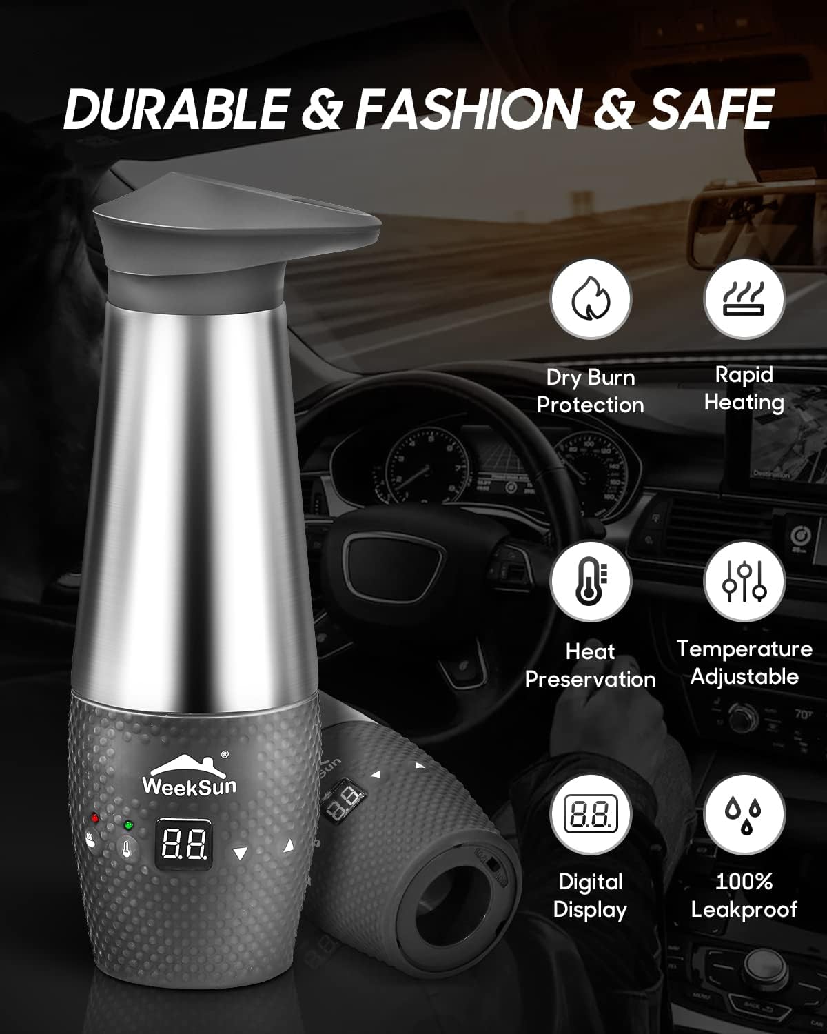 - 【GESUNDE WAHL FÜR DAS FAHREN - BESTES GESCHENK FÜR FAHRER】 Unser elektrisch beheizter Reisebecher ist für 12V-Zigarettenanzünder ausgelegt, voller Innovation und hat eine hervorragende Qualität. Es wird ein perfektes Weihnachts- / Thanksgiving-