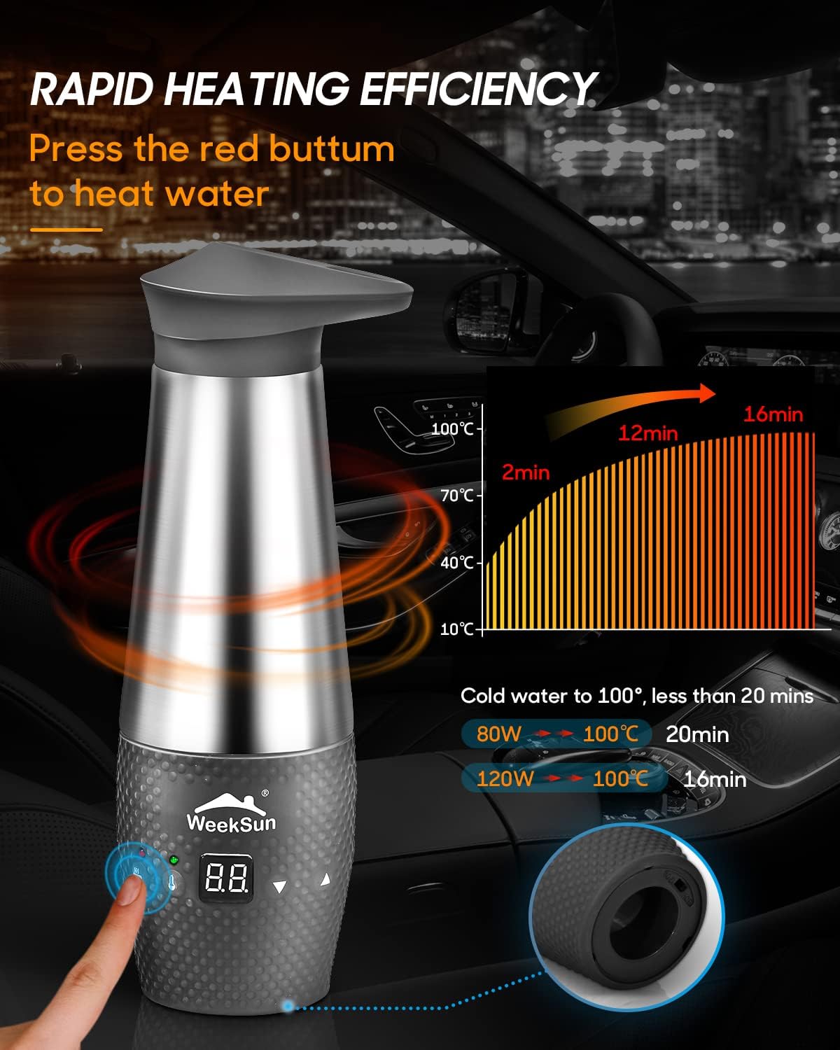 - 【SCHNELLES HEIZEN IN 16-20 MINUTEN】 120 W Heizleistung garantiert eine schnelle und effiziente Kocheffizienz. Unser Autokessel hat verdeckte Heizelemente, was ihn schneller und sicherer macht. Nehmen Sie eine Tasse Instant-Tee, Kaffee oder Milch zu
