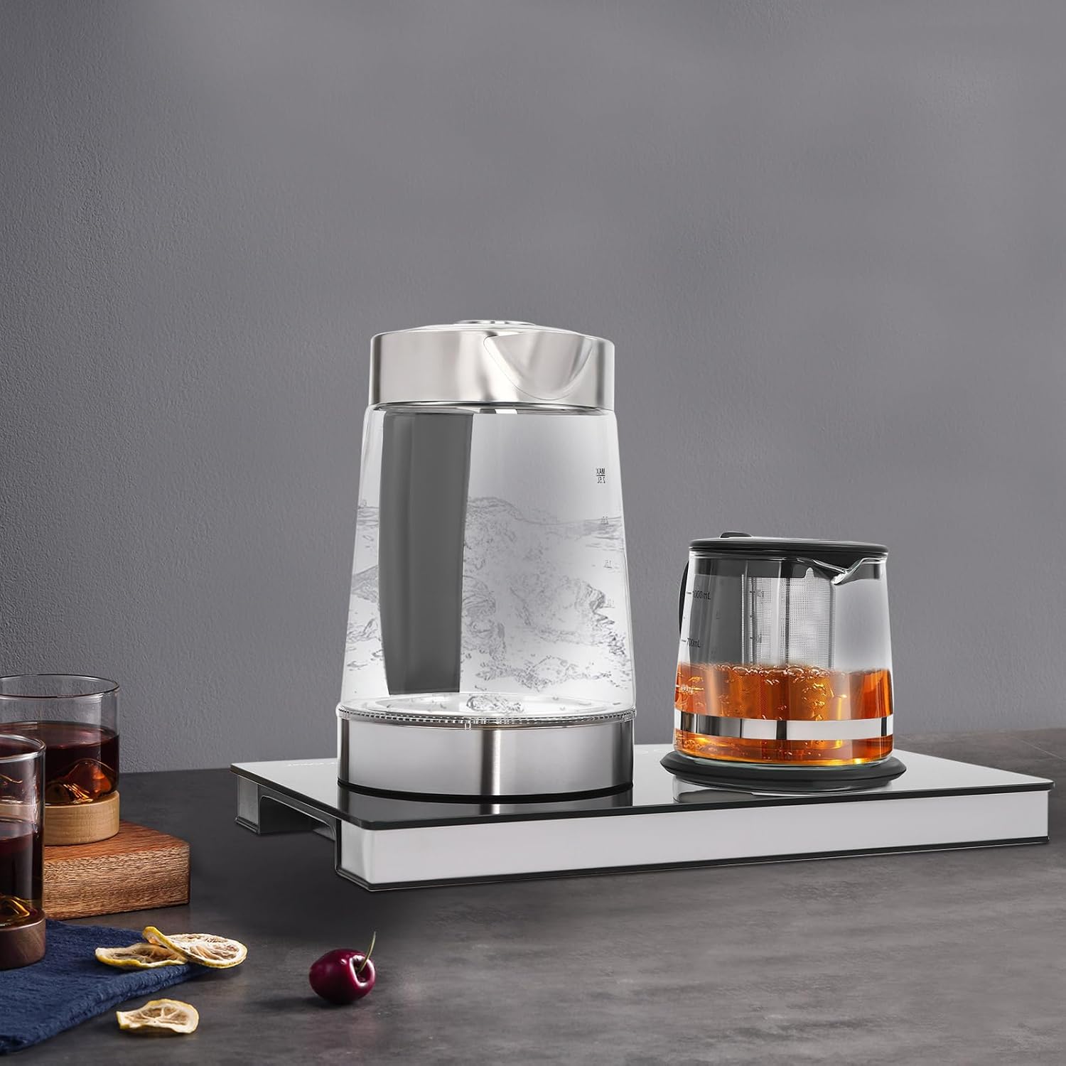 - Schnelles Aufkochen: Der grosse Wasserkocher hat eine hohe Leistung von 1800 W und kocht in etwa 6 Minuten. Sie können auch Wasser aus dem grossen Wasserkocher in den kleinen Wasserkocher giessen, um es warm zu halten (wählbare Temperatur: 158/176℉)
