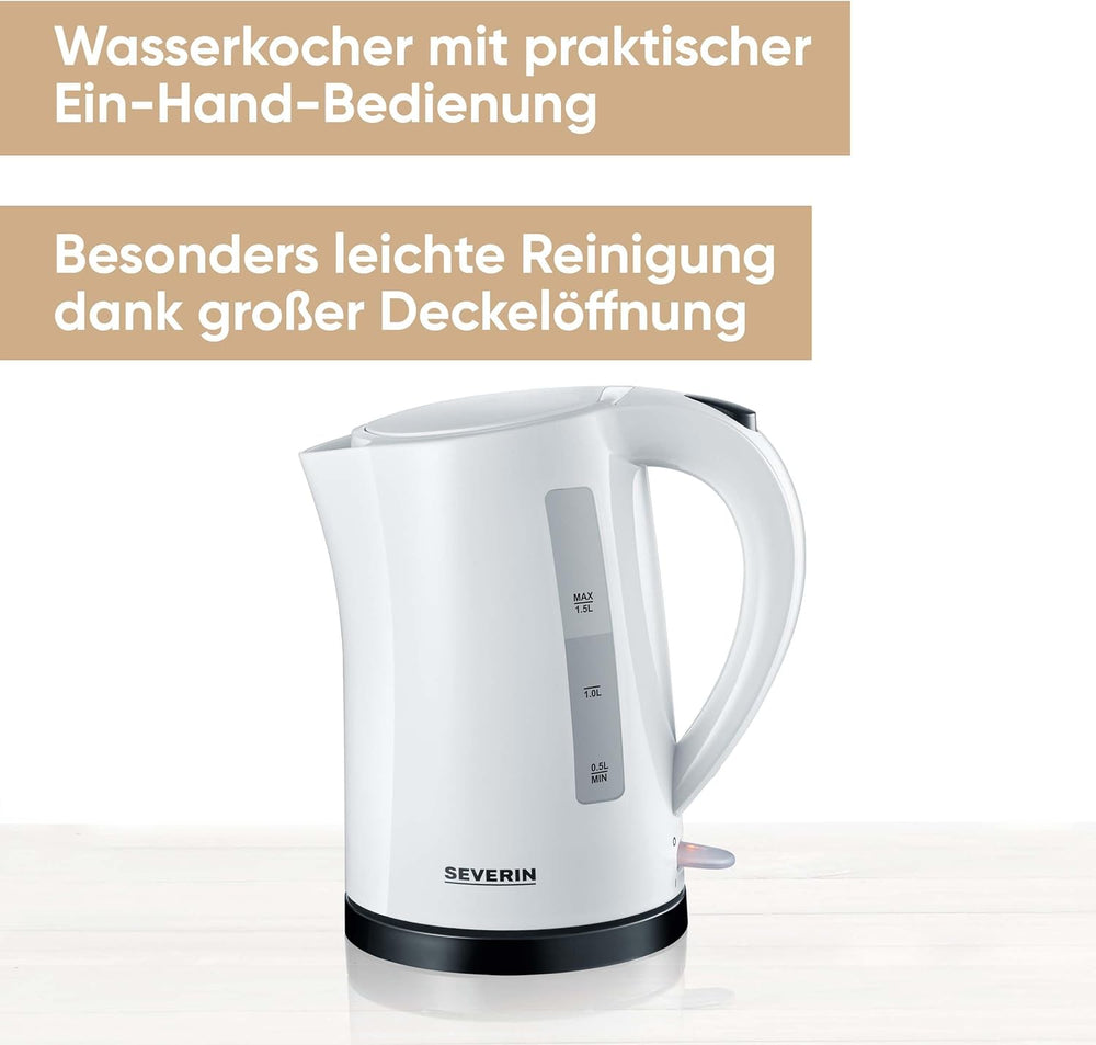 SEVERIN Wasserkocher 1,5 L, leistungsstarker und kompakter Wasserkocher in hochwertigem Design, elek