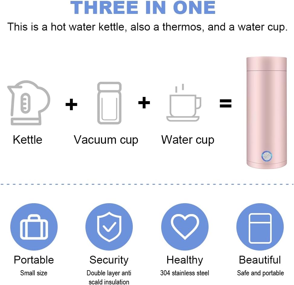 Unizooke Tragbarer Mini-Heizbecher,400ml ,220V Reise-Elektrisch-Wasserkocher,300W Vakuum,Für Milch,