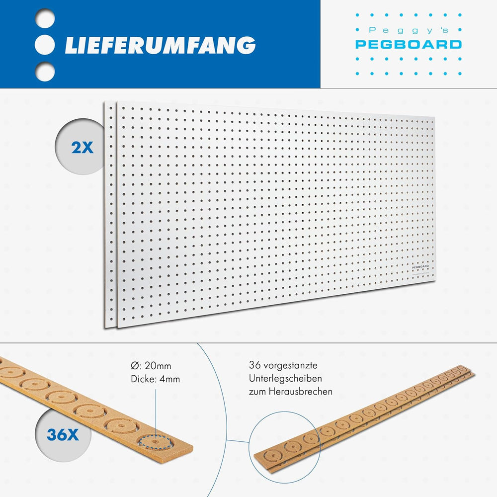 Pegboard 2 St. Werkzeugwand aus Holz (MDF) 120 x 60 x 0,5 cm - Lochung Ø7 mm Lochabstand 25,4 mm - w