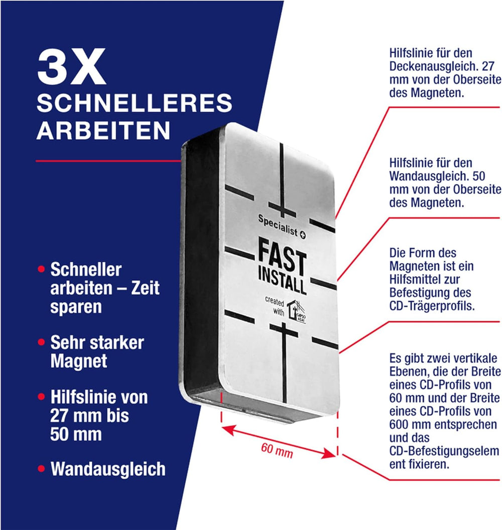 Specialist+ FAST INSTALL Magnet für den Trockenbau | Werkzeuge für Schnelle Montage, Nivellierung vo