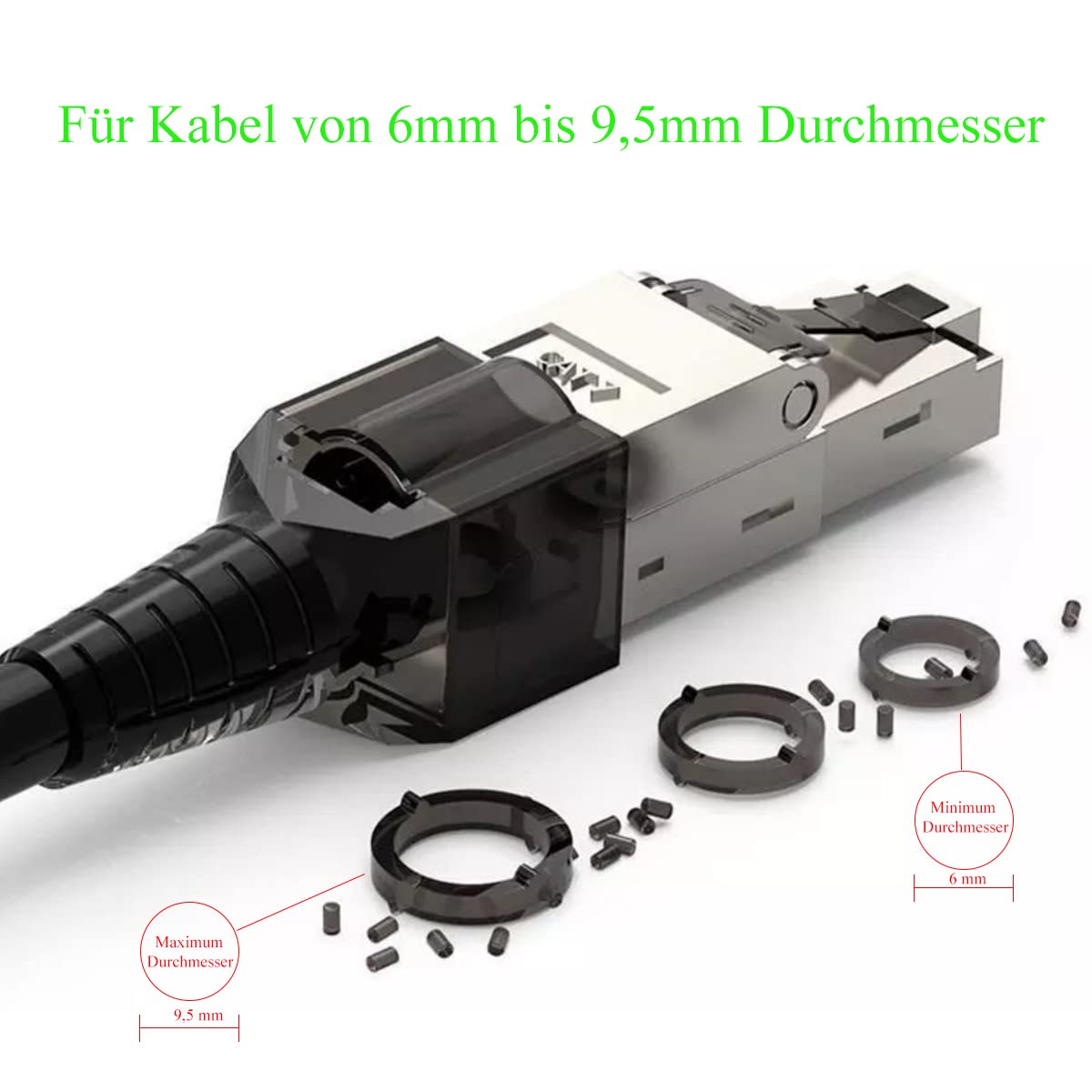 - Der CAT7 CAT7a RJ45 Netzwerkstecker unterstützt Gigabit Übertragungen - für Betriebsfrequenzen bis 1000 MHz bestimmt CAT 6a, CAT 7, CAT 8.1, T568A, T568B, PoE plus - Kabel Reduzierstück passend für verschiedene Kabel Ø 6,0 - 9,5 mm - für Patch-