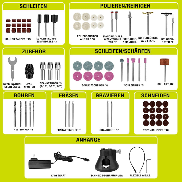 - VIELSEITIGES ZUBEHÖR & LED-LICHT: Das SnapFresh Akku-Multifunktionswerkzeug Set enthält 77 Zubehörteile wie HSS-Bohrer, Schleifbits, Trennscheiben, Schleifbänder und Polierscheiben. Das universelle Schnellspannfutter ermöglicht einen schnellen