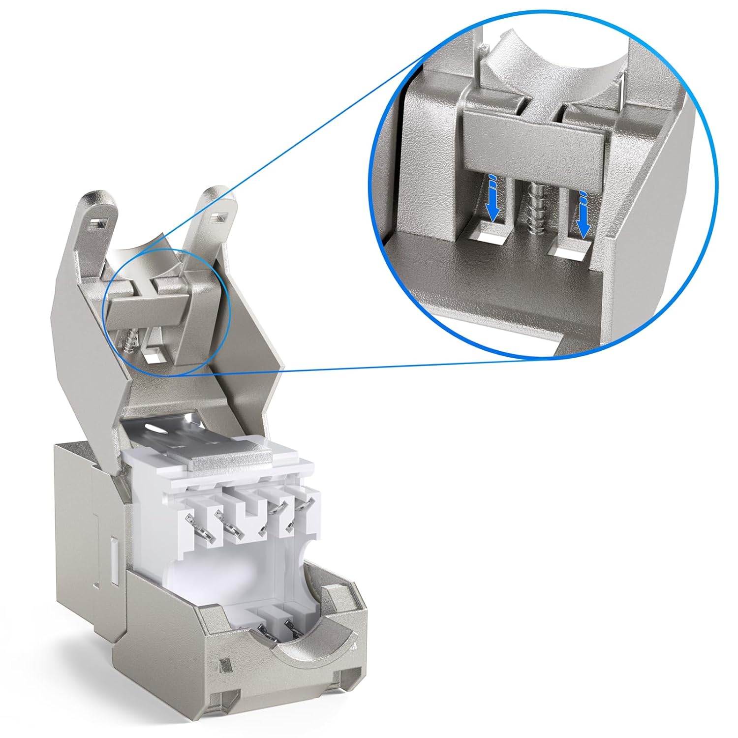 - Keystone Modul Cat.8.1 40 GBit - Anschlüsse LSA: Schneidklemme auf RJ45 Buchse "8P8C" Signalübertragung max 2000 MHz STP Voll Schirmung stossfestes Zinkdruckgehäuse