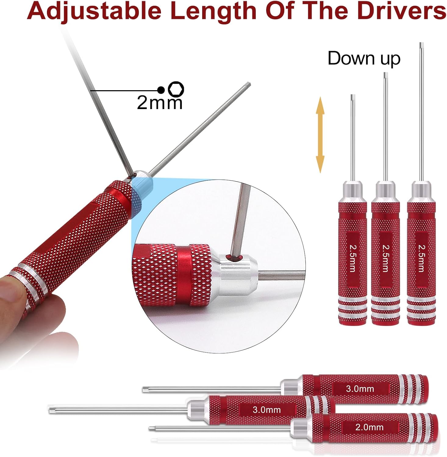 - Weite Anwendung: Sechseckschrauber RC Werkzeugsatz für RC Autos, RC Hubschrauber, RC Boote, Roboter, 3D Drucker, Traxxas Axial Arrma DJI Drohne und andere sechseckige Schraubenentfernung, ist es nicht nur ein unverzichtbares Werkzeug für