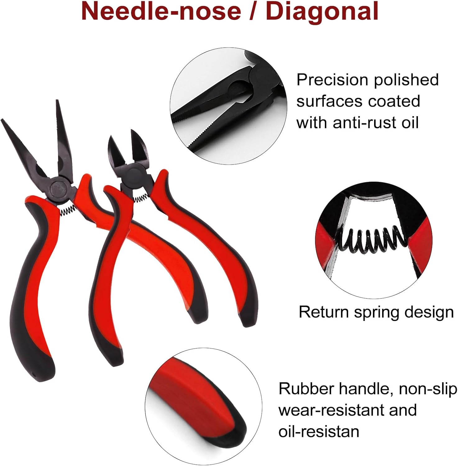 - Exquisite Verarbeitung: Gut gestaltete rutschfeste Griffe mit klaren Markierungen, neuartiges Aussehen, bequemer Griff, einfach zu identifizieren und zu verwenden, verbessern die Arbeitseffizienz. Das Zangenset verfügt über rutschfeste Gummigriffe und