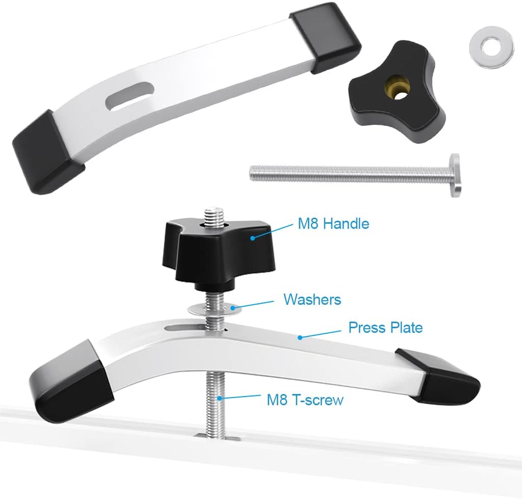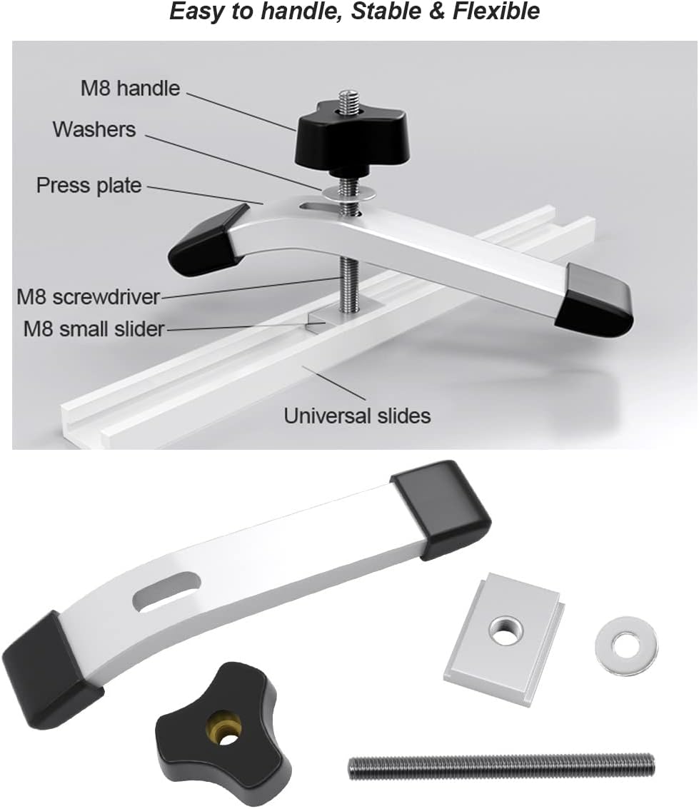 - 【Einfach zu Installieren und Zu Verwenden】Die T-Nut-Führungsschiene kann die Nutplatte leicht klemmen.Beim Betreten der T-Nut-Führung kann sie durch Drehen des Griffs schnell fixiert werden, um eine gute Leistung zu gewährleisten