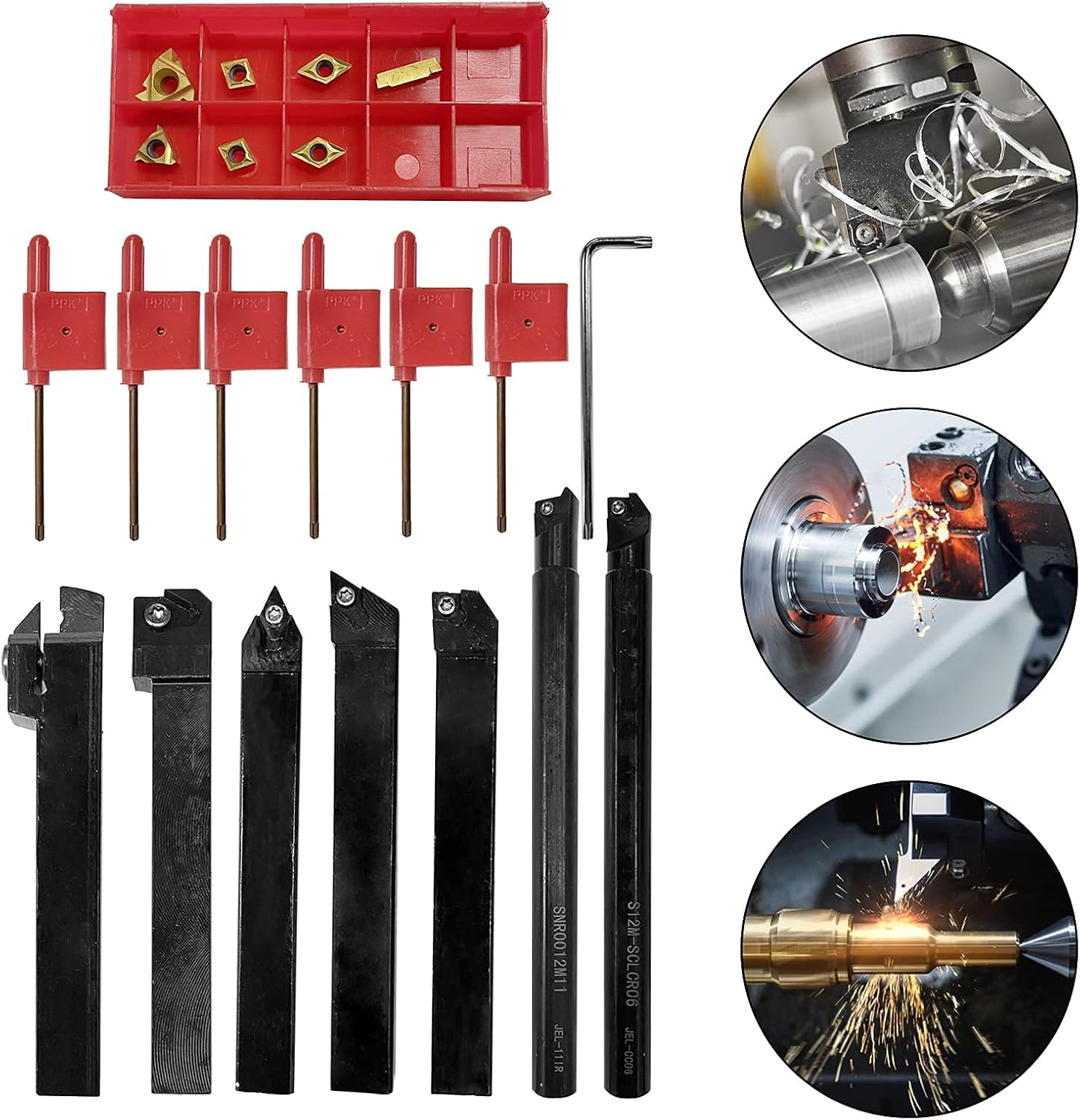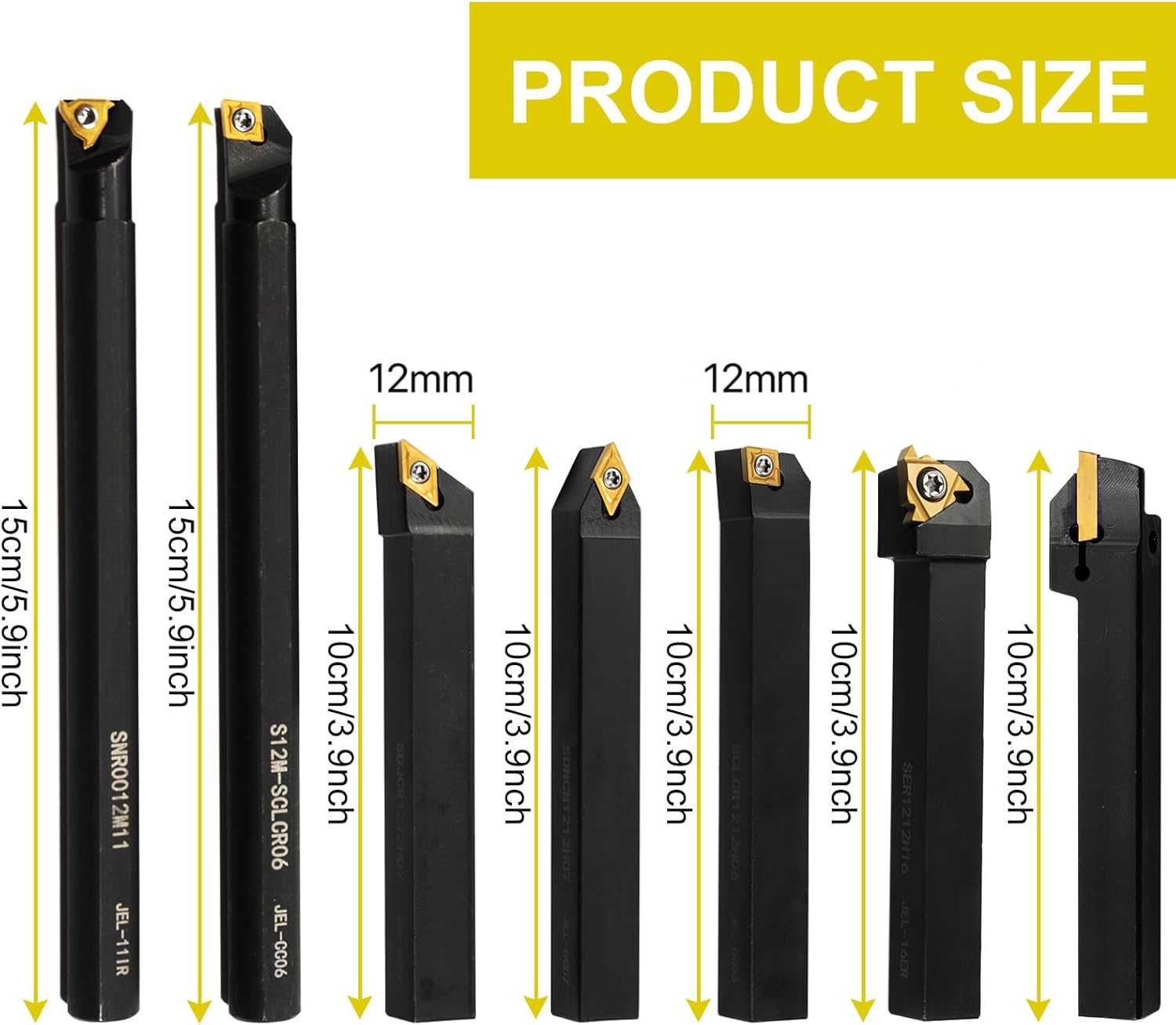 - Lieferumfang: 21pcs 12mm Drehwerkzeughalter Set inhalt --7 Stk.12mm Schaft-Bohrstangenhalter + 7 Stk. Hartmetall-Wendeschneidplatten+ 7 Stk. T8 Schraubenschlüssel.
