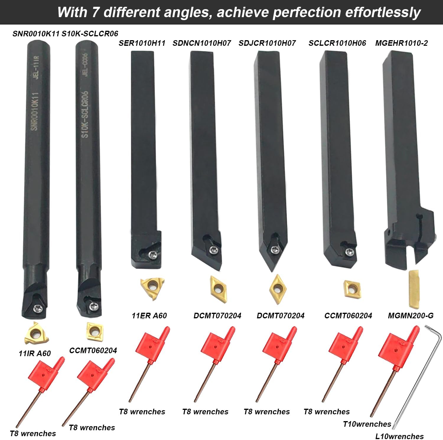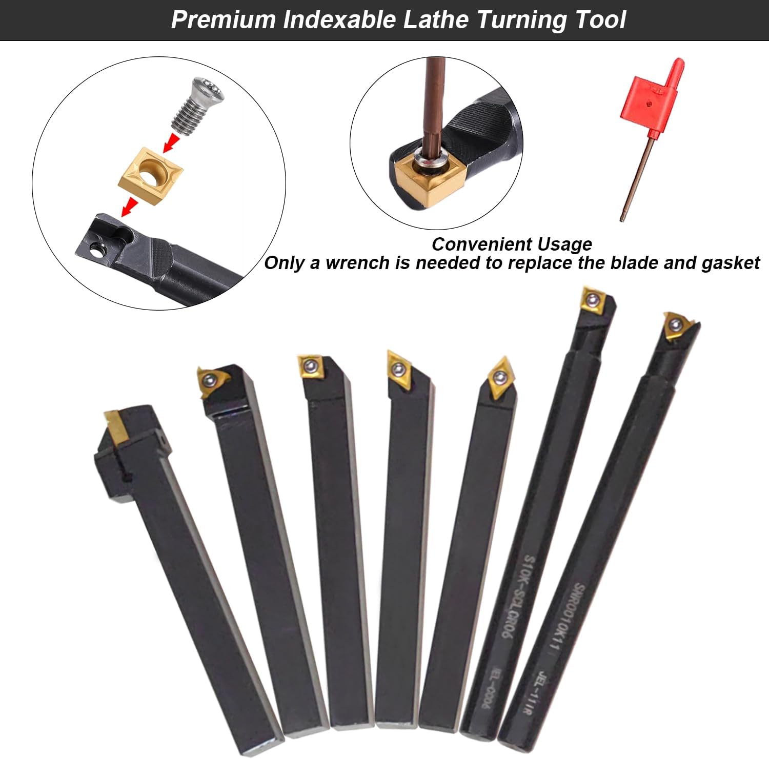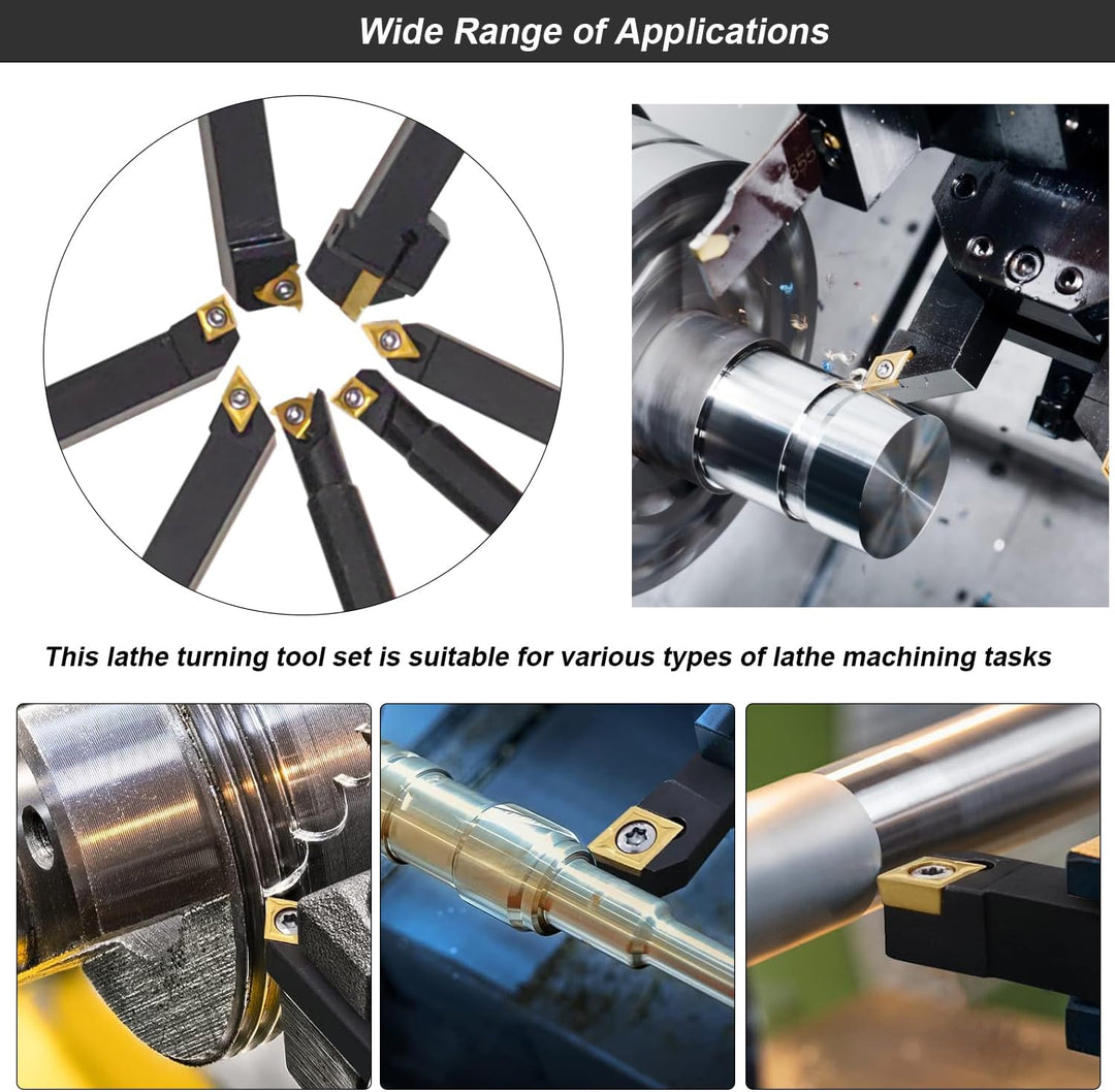 - 【Hohe Leistung】Der Hochleistungsdrehmaschinen-Werkzeugsatz bietet hohen Grip, Schlagfestigkeit und starke, klare Geschwindigkeitsvorteile, die grössere Kanten schneiden und die Verarbeitung durchführen können. Gute Zähigkeit und Härte, lange