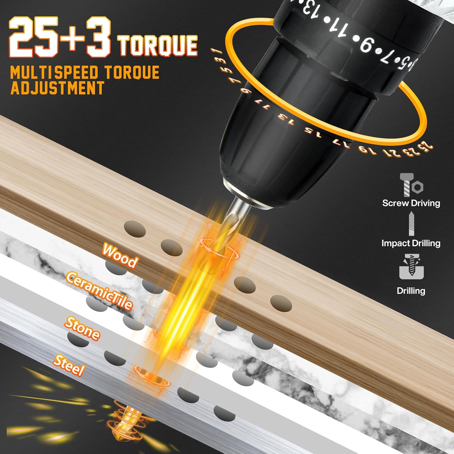 - ๐-๐ข๐ง-๐-๐๐ค๐ค๐ฎ- & ๐๐จ๐ก๐ซ๐ฌ๐๐ก๐ซ๐๐ฎ๐๐๐ซ: Dieses vielseitige 4-in-1-System ist fรผr akkuschrauber, Bohrer sowie Schlagbohrmaschinen und -schrauber konzipiert und bietet 25+3 Drehmomenteinstellungen bis