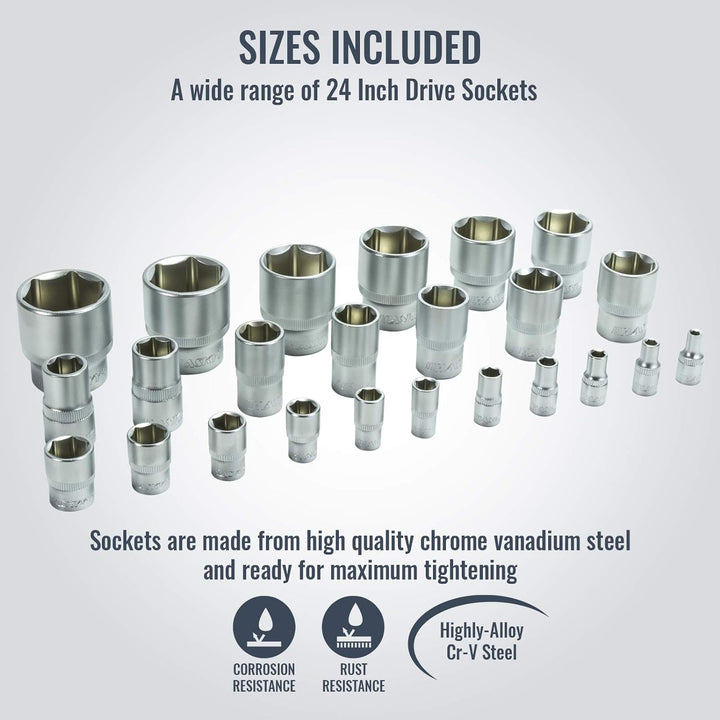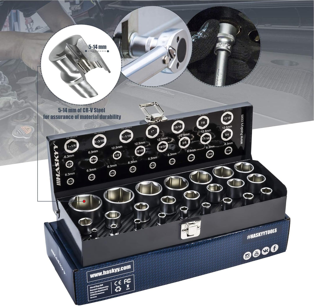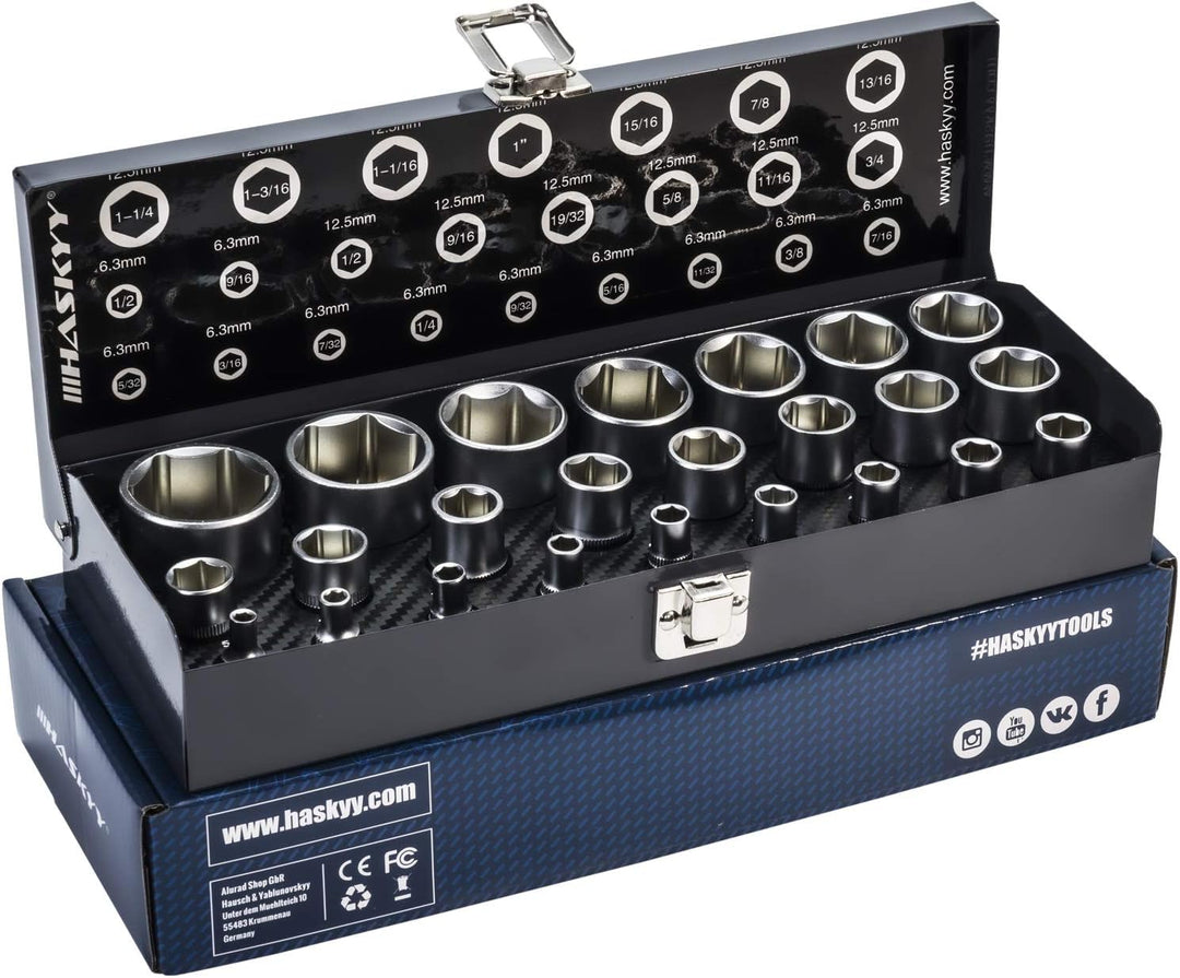 - 24 tlg. Haskyy Zoll Steckschlüssel Stecknüsse Nusskasten Werkzeug Satz Schlüssel Nüsse