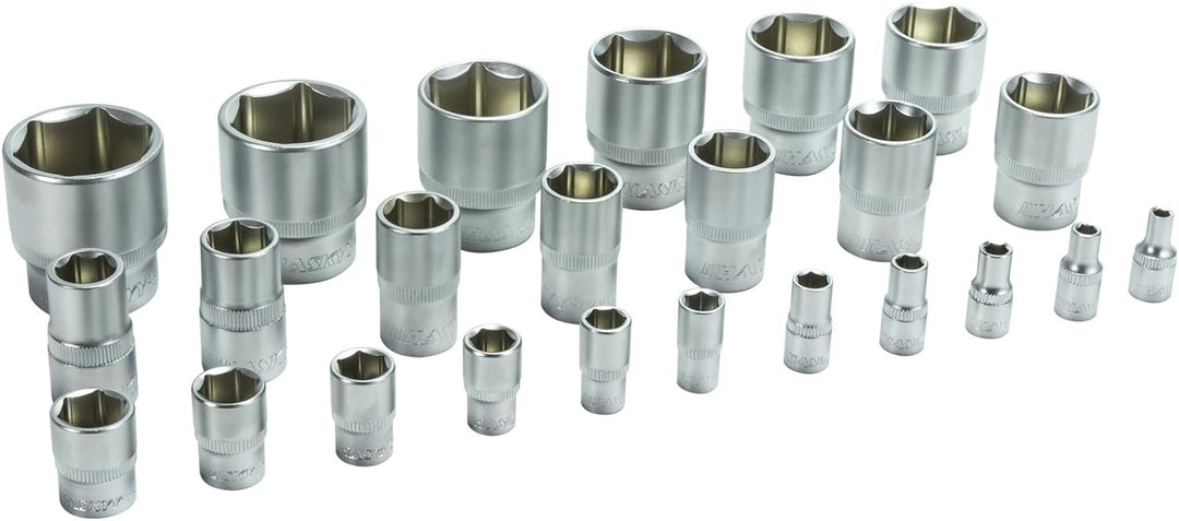 - ✔ 13 Steckschlüssel mit 1/2" Antrieb innen Vierkant: 1/2 ; 9/16 ; 19/32 5/8 ; 11/16 ; 3/4 ; 13/16 ; 7/8 ; 15/16 ; 1 ; 1.1/16 ; 1.3/16 ; 1.1/4 ✔ Chrom Vanadium Stahl