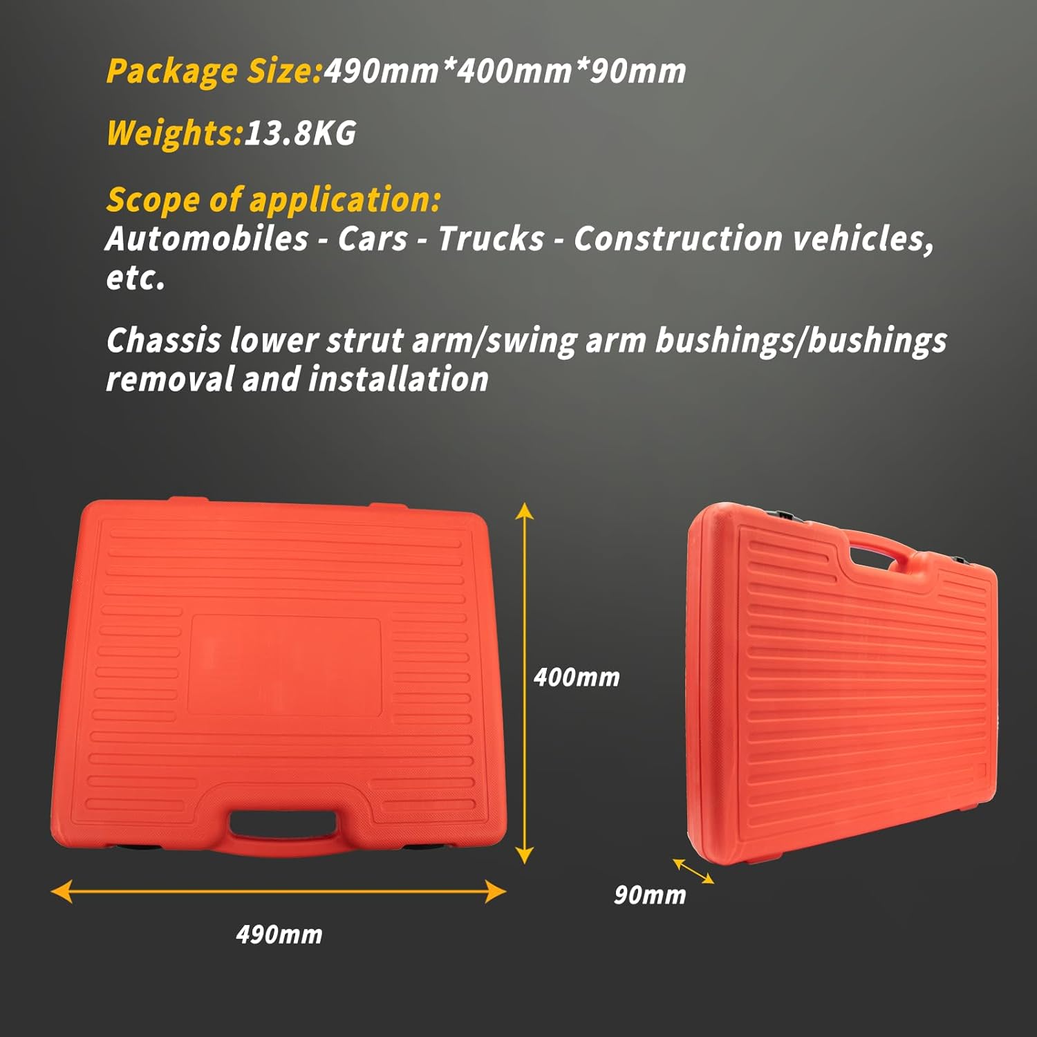 - Produktverwendung: Wird zum Aus- und Einbau von Lagern, Buchsen und Dichtungen verwendet und verringert die Möglichkeit einer Beschädigung von Lagern oder Aufhängungsgehäusen.