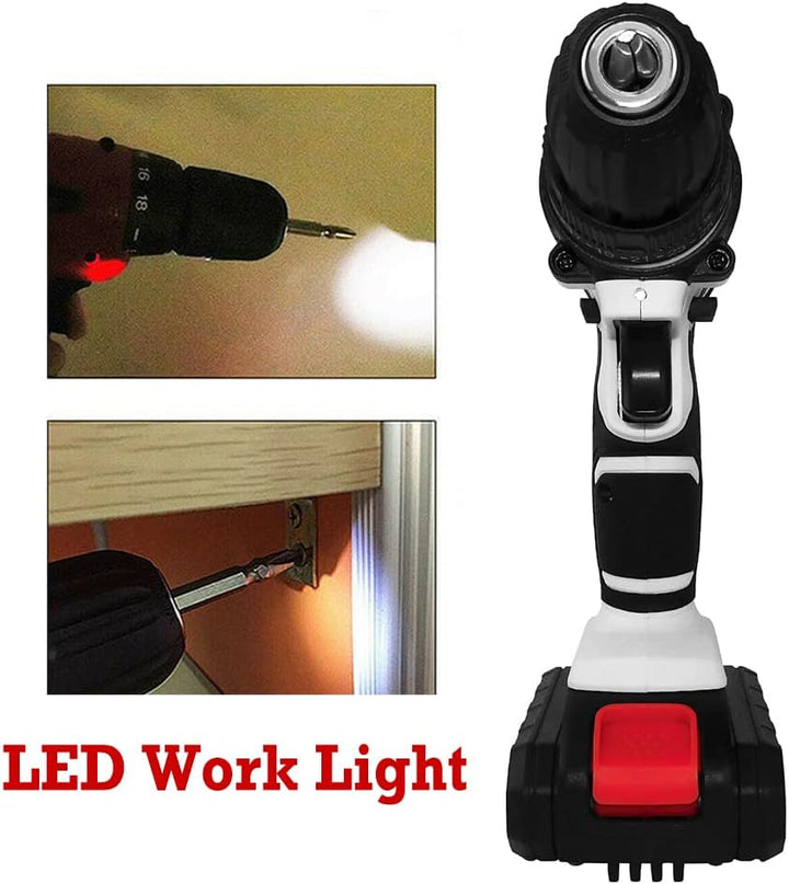 - Leistungsstarkes Werkzeug - Das leistungsstarke Zwei-Gang-Getriebe des Akku-Schlagbohrschraubers ermöglicht kraftvolles Bohren und Schrauben mit 45 Nm Drehmoment und 25+1 Drehmomentstufen. Der Akku-Bohrschrauber verfügt sowohl über Vorwärts- als auch