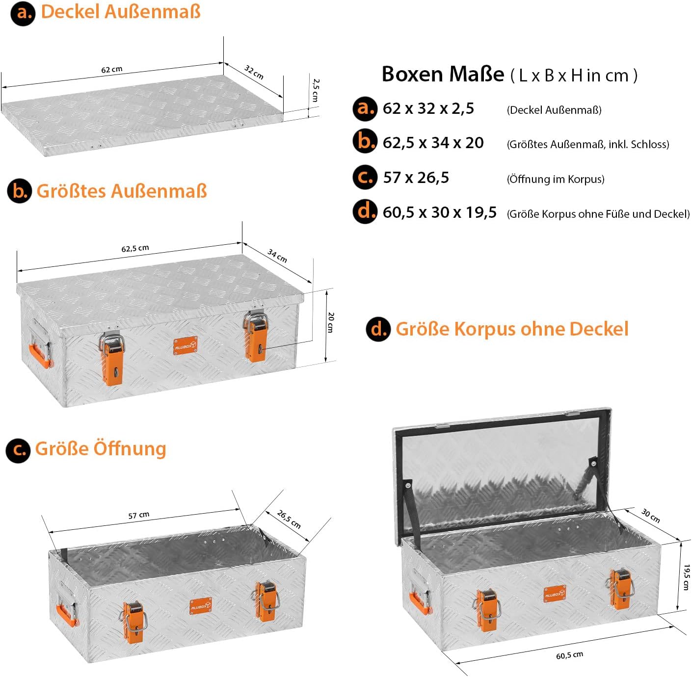 - Griffe aus Aluminium, Schlösser und Scharniere aus Edelstahl