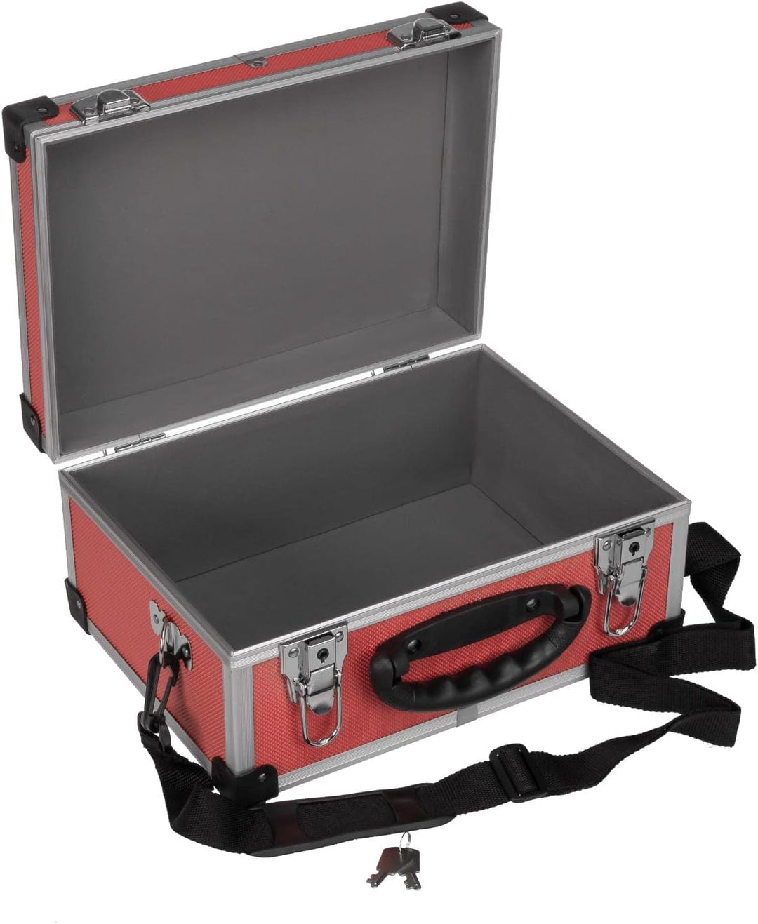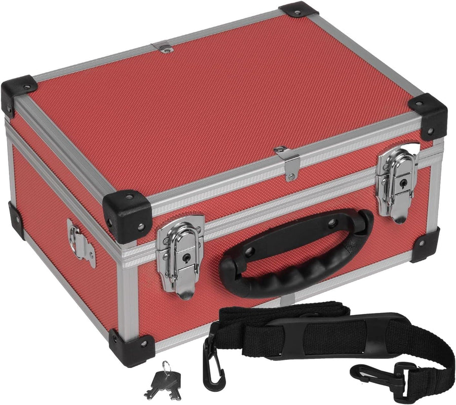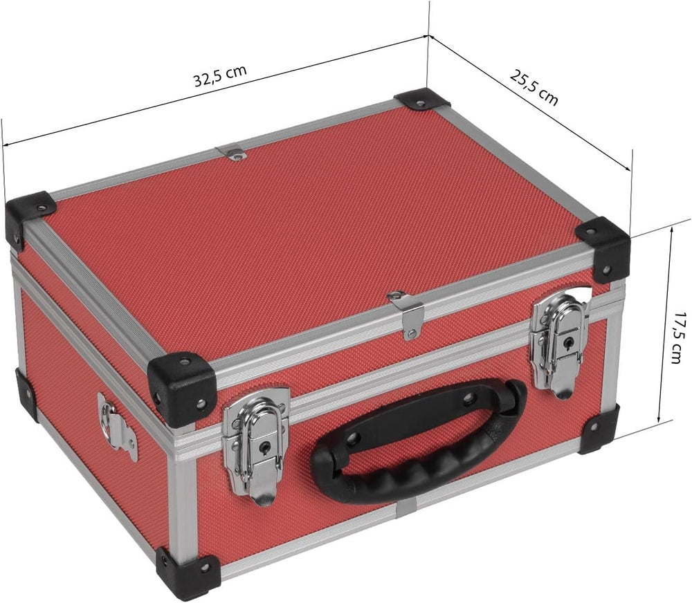 - Aussenmasse inkl. aller überstehenden Teile (Griff, Schlösser, Scharniere, etc.): 32,5 x 25,5 x 17,5 cm