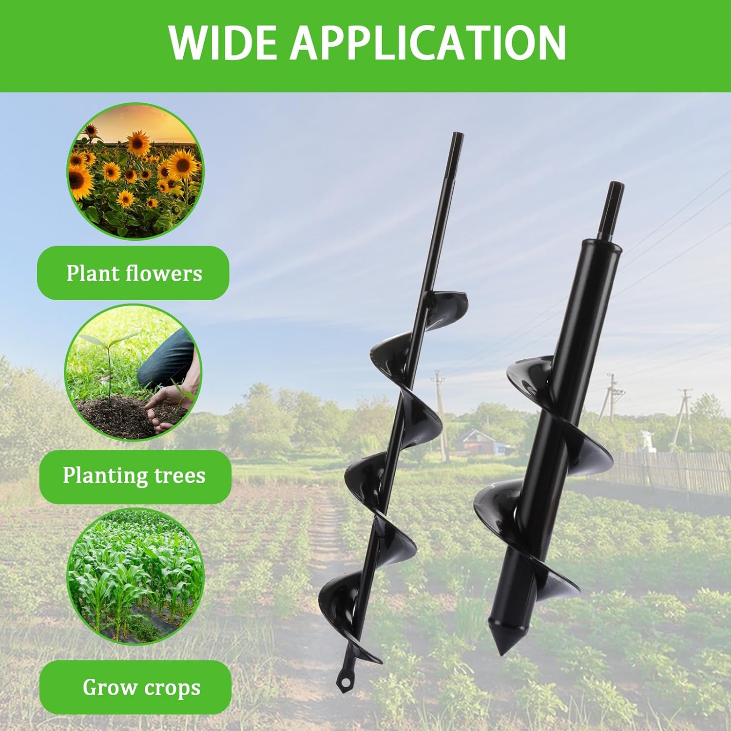 - 【HOCHWERTIGES MATERIAL】Die Erdbohrer für Bohrmaschine ist aus hochwertigem Manganstahl und rostfreiem und bruchfestem Stahl hergestellt, alle Wellen im Inneren sind solide, langlebig und nicht leicht zu verformen. Die Oberfläche der