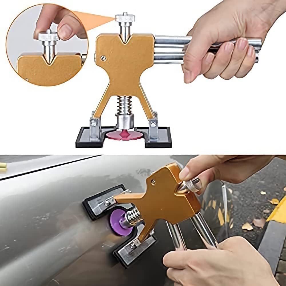 - đ§ăMeets all your requiredă Goldener Dellenheber Entfernung speziell fĂŒr kleine Dellen, T-Puller arbeitet auf Delle der grossen FlĂ€che, Hammer und Nylonstift hilft Ihnen, zu nivellieren und zu reparieren, die Beulen, die Sie nicht gut beherrschen die StĂ€rke. Cleaning Tools können Ihr Auto neu aussehen lassen!