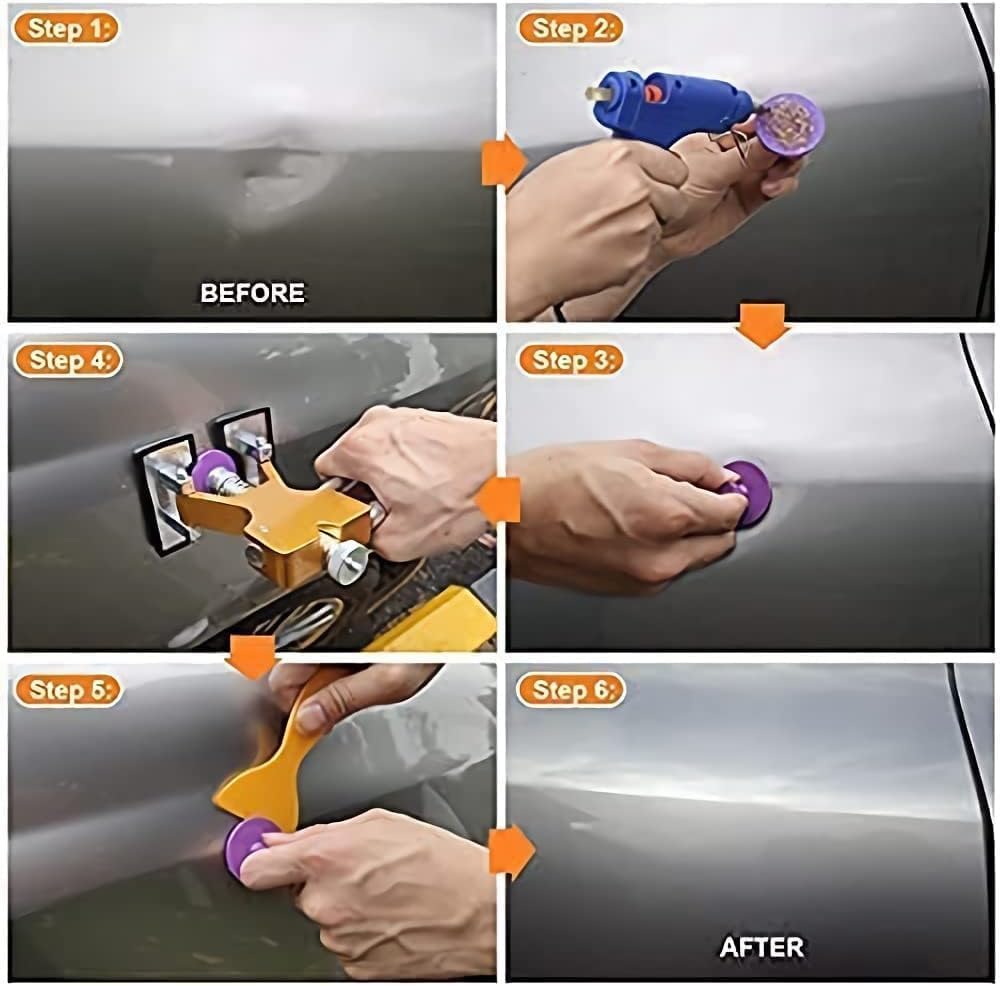- đąăEinfacher DellenentfernungsprozessăUnser Dellenentferner-Werkzeugsatz ist einfach von MĂ€nnern oder Frauen zu bedienen. Geeignet fĂŒr professionelles Autoreparaturpersonal, das in der Werkstatt verwendet wird, und fĂŒr Familienmenschen, die die malerlose Dellenreparatur selbst durchfĂŒhren. Hinweis: Bevor Sie Dellen reparieren, beachten Sie bitte die detaillierten Reparaturschritte in der Anleitung.