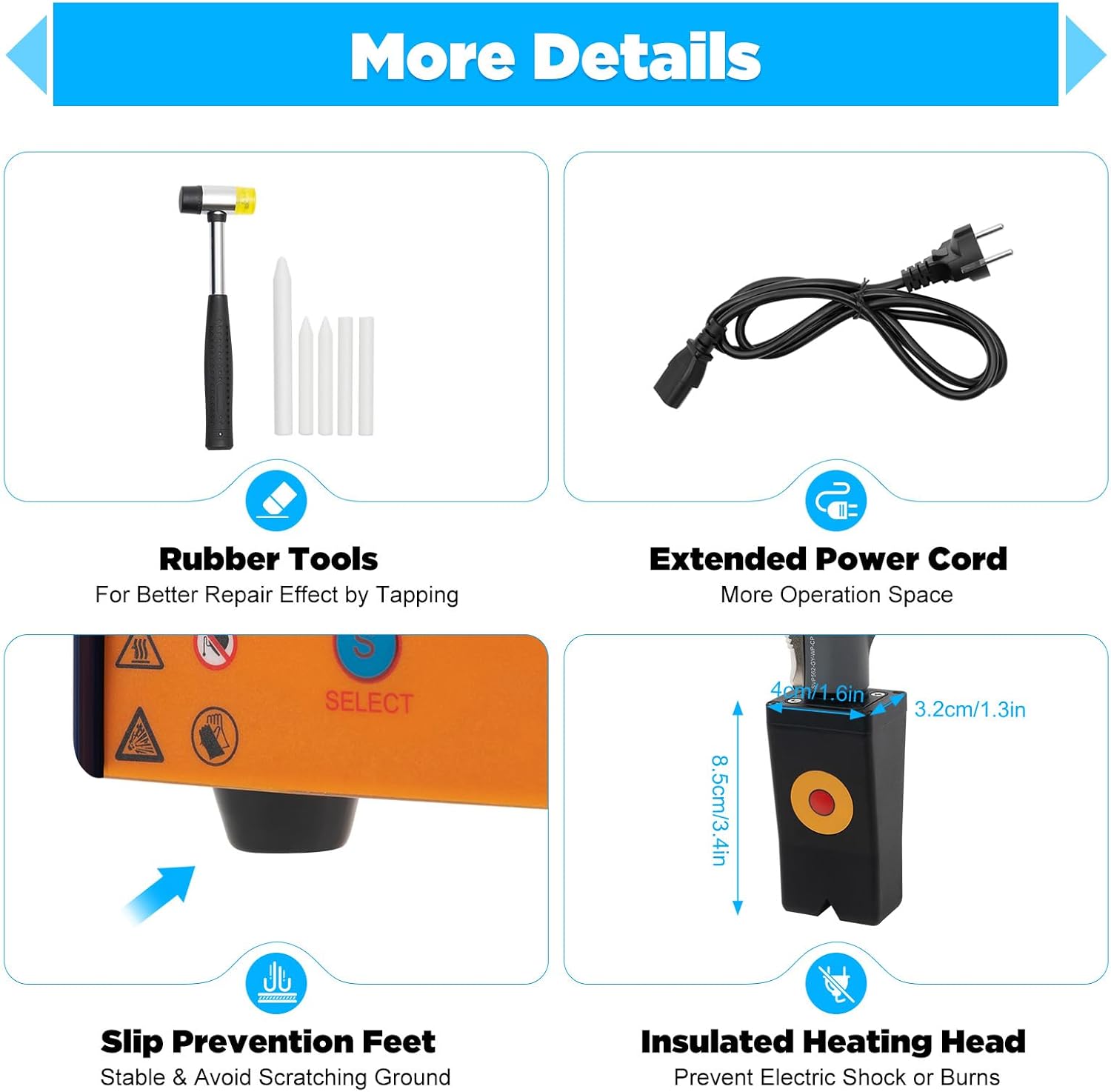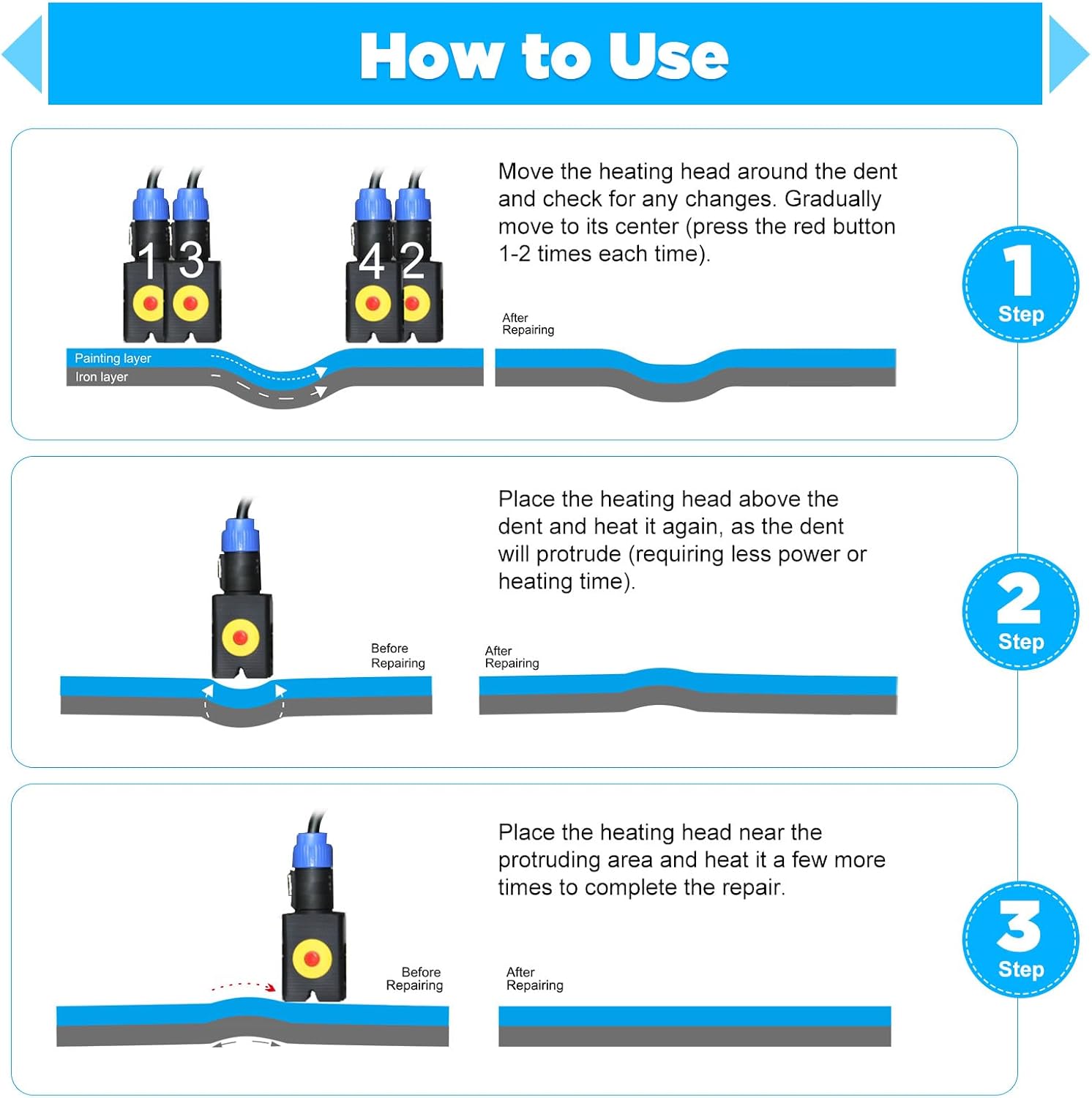 - [Langlebig und Hocheffizient] Mit einer maximalen Leistung von 1,34KW repariert dieses Ausbeulwerkzeug effektiv kleine Dellen an Karosserie- und Türoberflächen. Die hohe Effizienz spart Ihnen viel Zeit während des Reparaturprozesses. Die