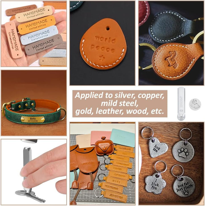 - [EINFACH ZU VERWENDEN]: Einfach in Materialien wie Aluminium, Zinn, Alkem, Kupfer, Messing, Nickel, Silber, Holz und Leder zu pressen, EINZIGARTIGE UND ZEITLOSE Schrift für Ihre einzigartigen Projekte und Handwerke