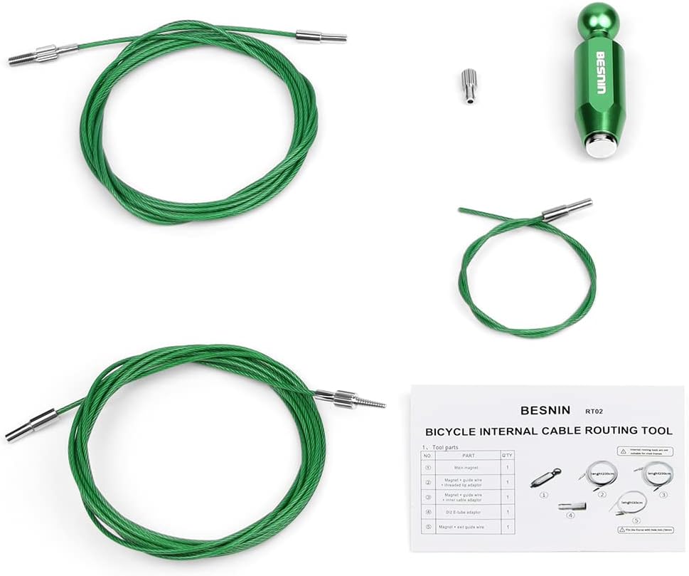 - Über das Paket für die interne Kabelführung: Unser Fahrradbespannungswerkzeug enthält 1* Hauptmagnet,1*Magnet+Führungsdraht+Gewindespitze(200cm) Adapter,1*Magnet+Führungsdraht+Innenkabeladapter(200cm),1*Di2