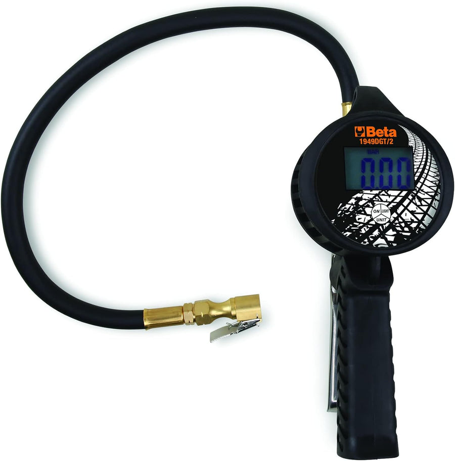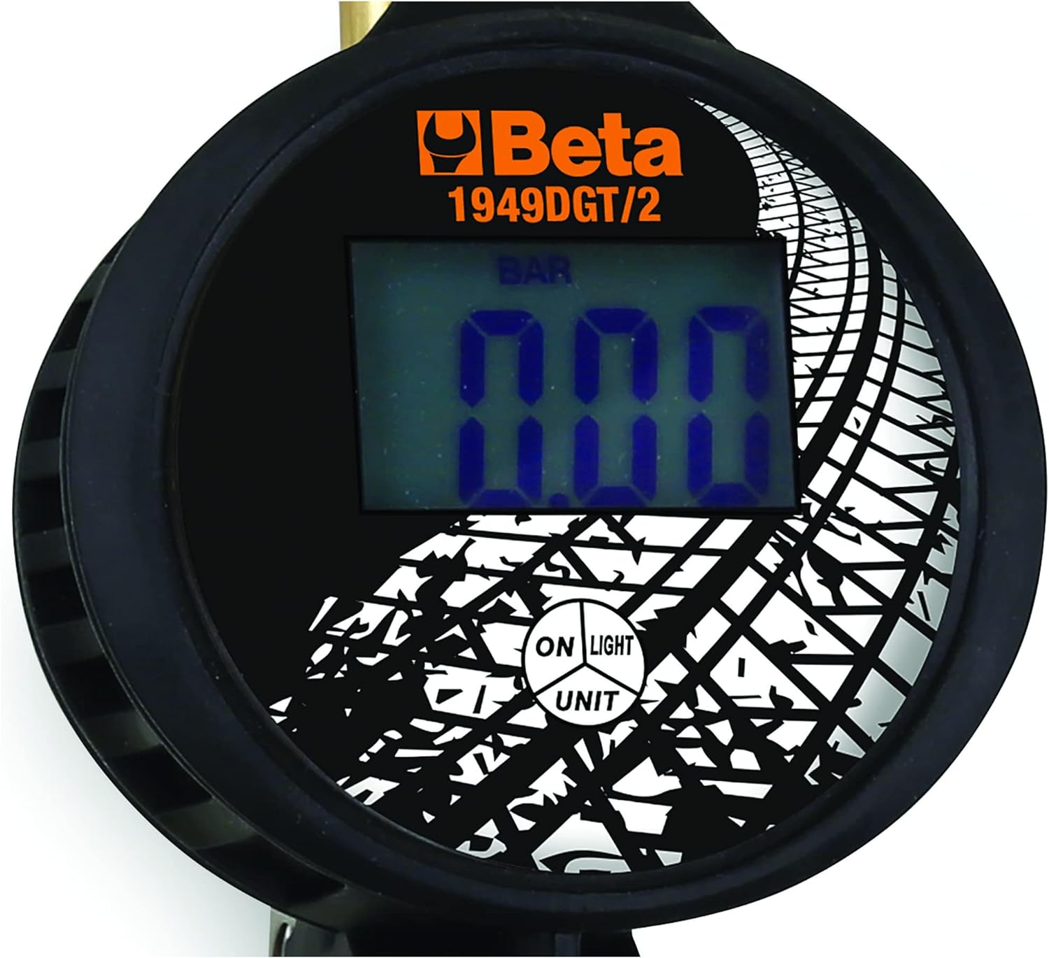 - Lieferumfang: Beta- 1949DGT/2 Reifenfüller mit digitalem Manometer - mit stossfestem Gummi beschichtet - Metallantrieb - automatische Abschaltung nach 1,5 Minuten - Farbe: Schwarz