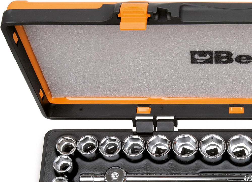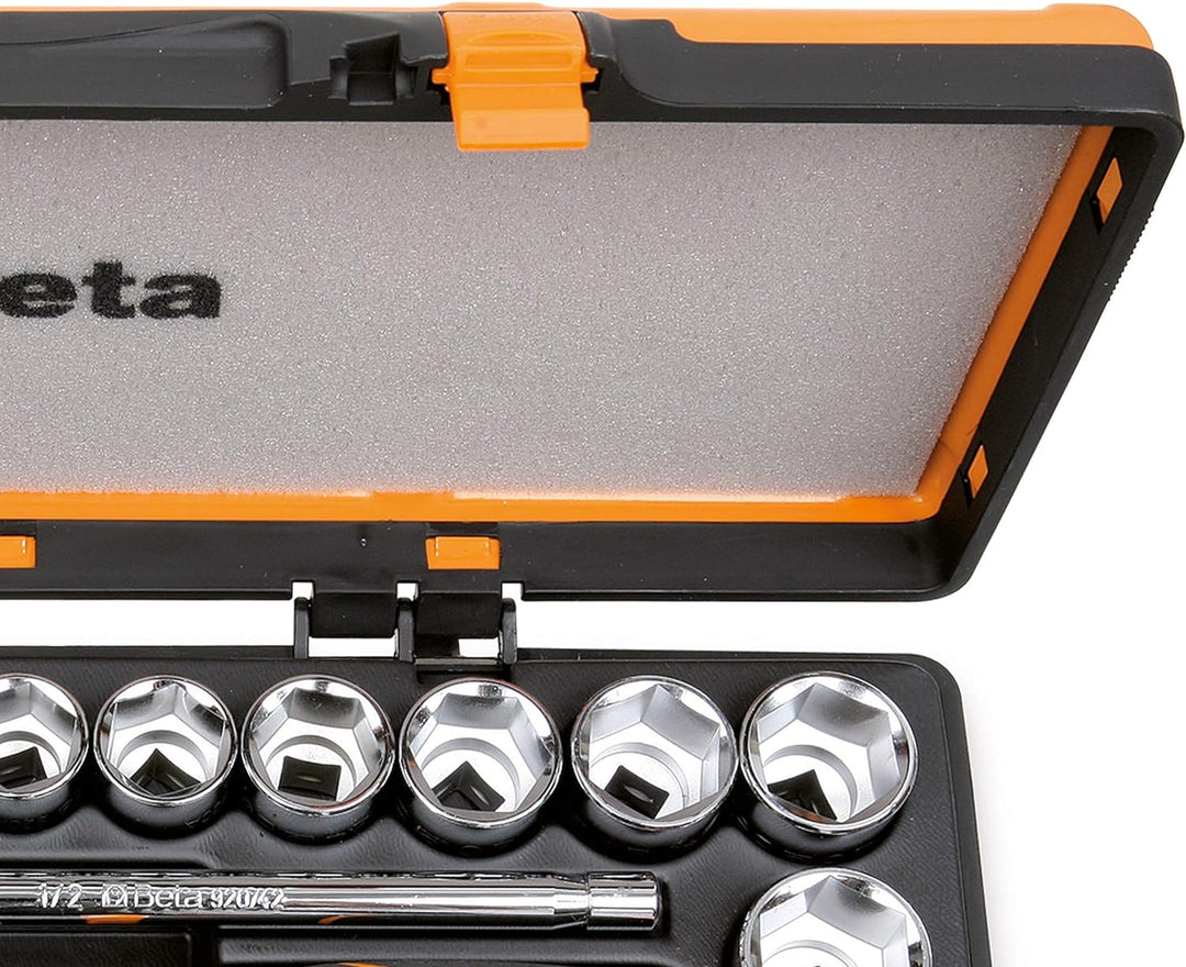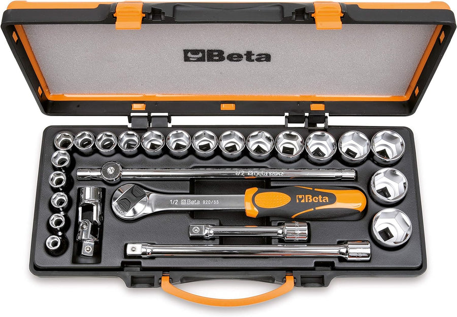 - Lieferumfang: Beta 920A/C20X Steckschlüssel Set - Sechskant 10, 11, 12, 13, 14, 15, 16, 17, 18, 19, 20, 21, 22, 23, 24, 26, 27, 28, 30, 32 mm - 5 Betätigungswerkzeuge - Farbe: Schwarz/ Orange