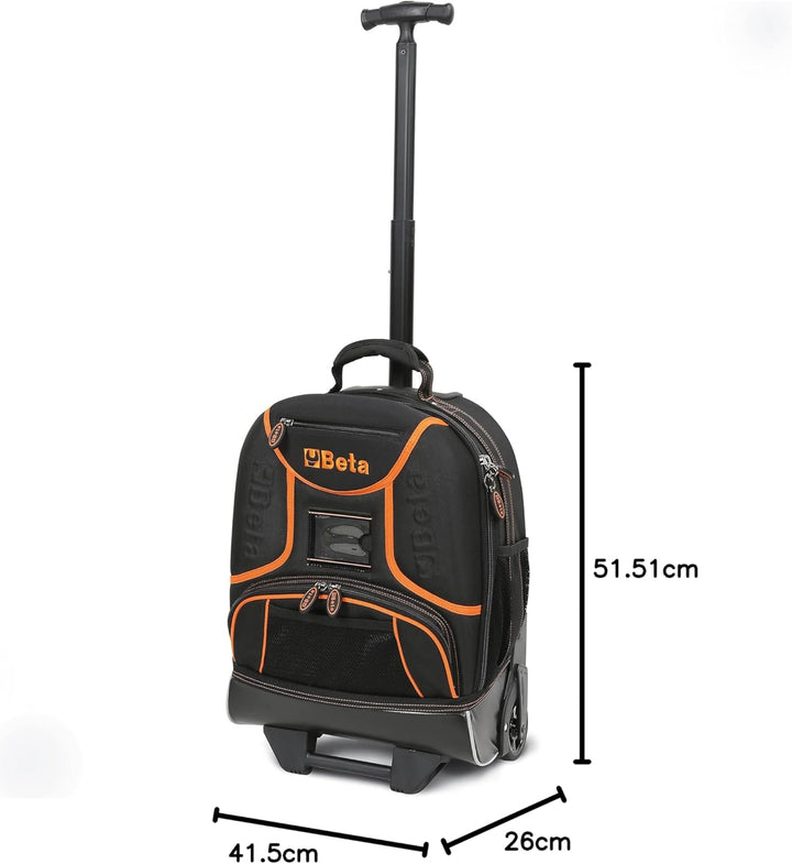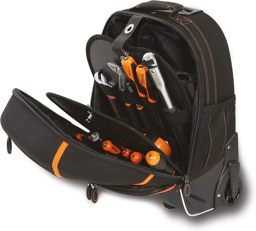 - Lieferumfang: Beta C6T-2106 Werkzeugrucksack aus Hightech-Gewebe (Teleskopgriff, 4 Rollen, 2 herausnehmbare Werkzeugpaneele) - Masse: 480x370x220 mm - Farbe: Schwarz/Orange - Made in Italy