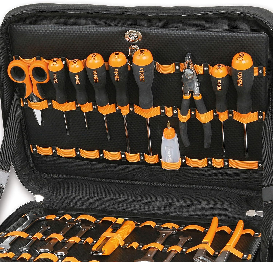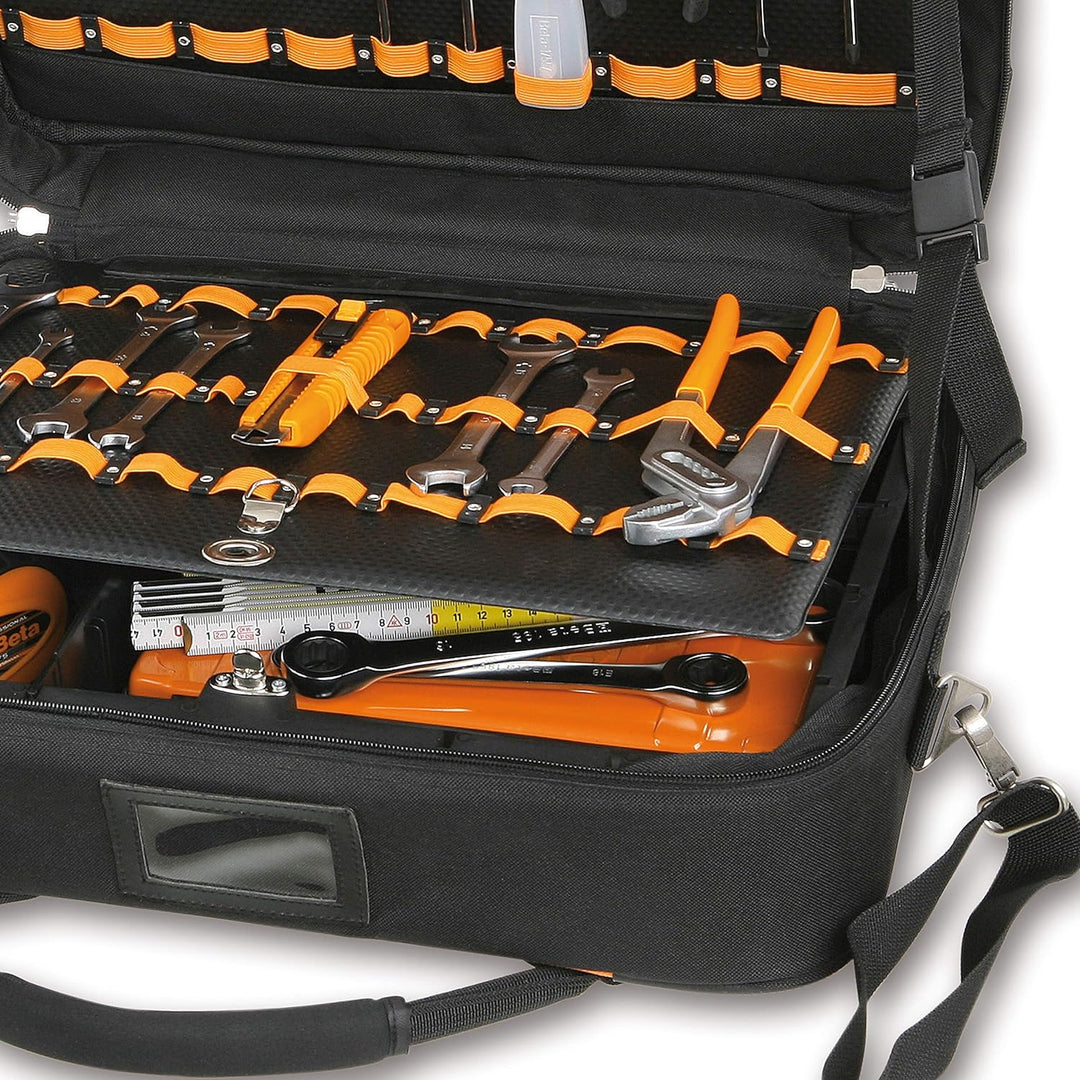 - Lieferumfang: Beta BE 2107/C7 leere Werkzeugtasche-High-Tech-Gewebe - Aussentaschen - Tragegurt - integrierte Notebook-Tasche - Masse: 440370170 mm - Gewicht: 3,5 kg - Farbe: Schwarz