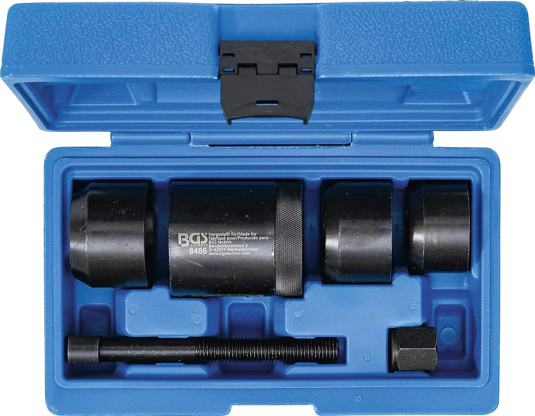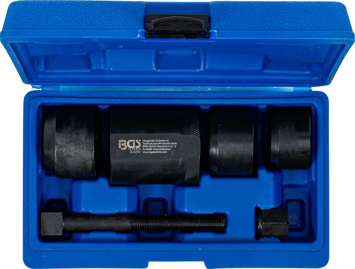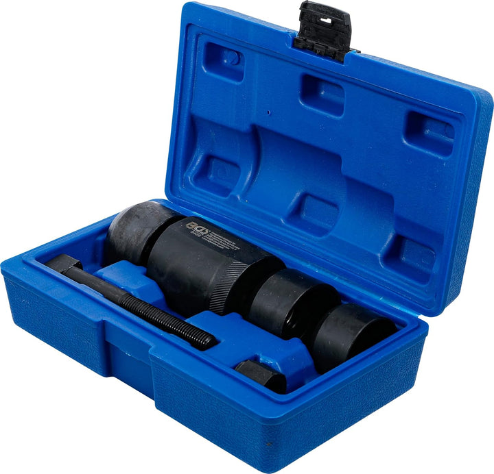 - beinhaltet: 1 x hochfeste Spindel, 1 x Sechskantmutter mit Bund, 1 x Demontage-Druckhülse, 1 x Demontage-Gegenhaltehülse mit Lager, 1 x Montage-Gegenhaltehülse, 1 x Montage-Druckhülse