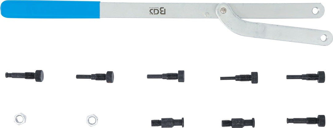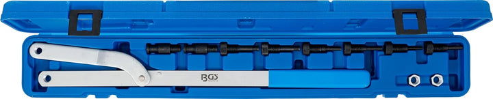 - mit 4 Paar austauschbaren Haltezapfen, 6 -10 mm, 8 - 11 mm, 10 - 12 mm, 11 - 16 mm, daher für nahezu alle Nockenwellenräder geeignet.