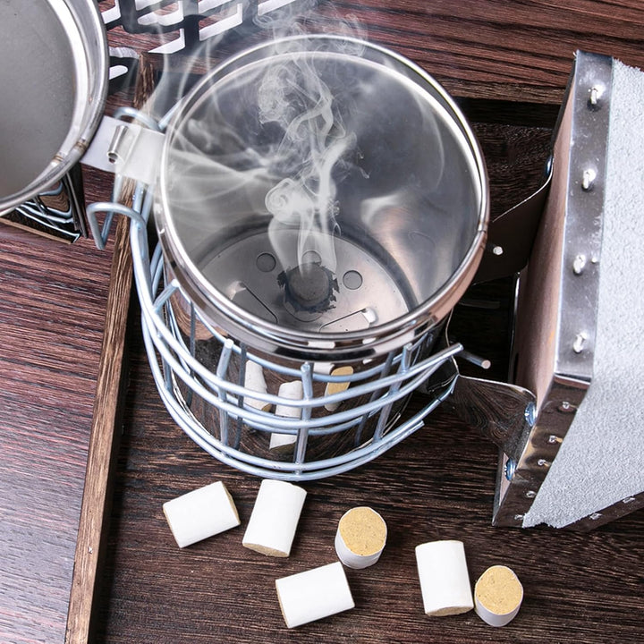 - 2. Bienenstockinspektion: 2-4 Pellets pro Verwendung brennen bis zu 20 Minuten lang, so dass Sie Ihre Bienenstockinspektion sicher durchführen können, ohne sich Sorgen zu machen, dass Ihr Räuchergerät ausgeht, wenn Sie es am meisten brauchen.