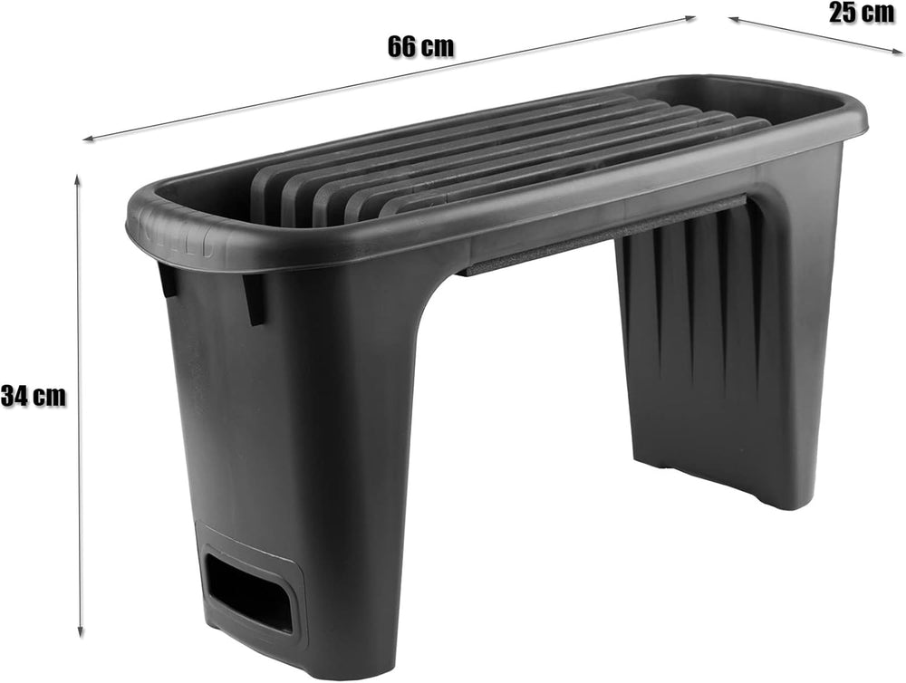 - Viel Stauraum für Ihr Werkzeug oder Gartengeräte: Legen Sie Ihre Utensilien einfach links und rechts innerhalb der Sitzbank! Durch die praktischen Tragefächer an den Seiten können Sie somit die Bank auch total einfach transportieren