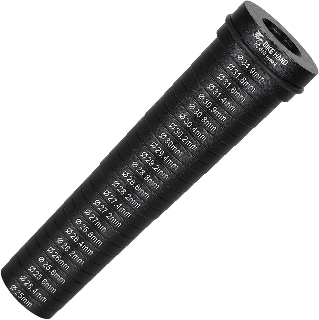 - Einfach zu bedienen: Schnelle Methode, um die Sattelstützengröße oder den Innendurchmesser des Rahmens zu messen. Legen Sie einfach das Messgerät in das Sitzrohr.