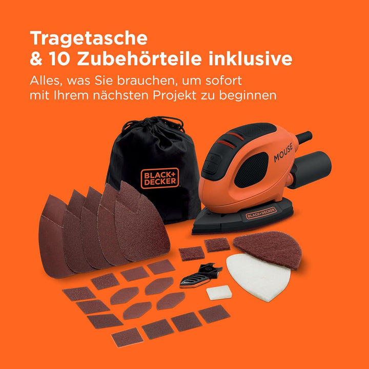 - ULTRAKOMPAKTES UND LEICHTES DESIGN: Der BLACK+DECKER Mausschleifer ist leicht und einfach zu handhaben, mit seiner spitzen Nase und dem ergonomischen Design können Sie bequem arbeiten und enge Räume mühelos erreichen. "