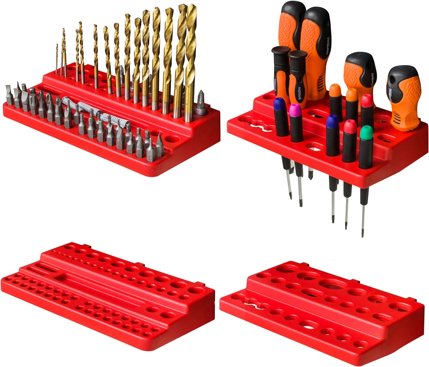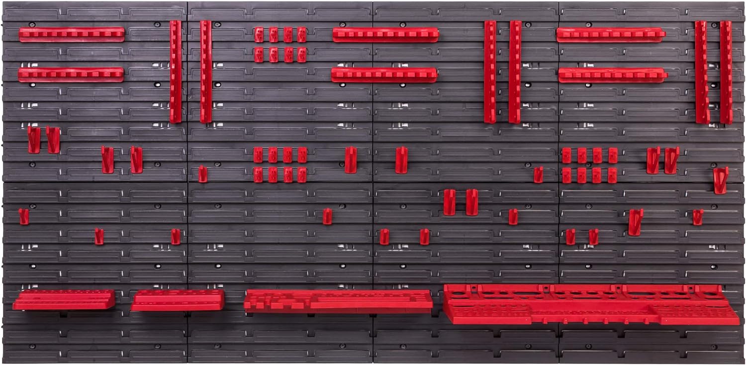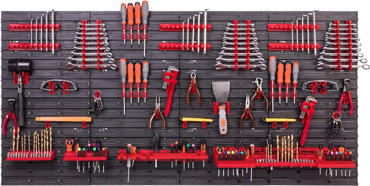- Werkzeughalter : 3 x Schraubenschlüsselablage, 6 x Klemmleisten, 12 x Werkzeughaken M Klein, 12 x Werkzeughaken XXL Gross, 24 x Werkzeugklemme 1 x Bohrer - und Bithalterung Kunststoff rot Grösse: 190 x 111 x 32 mm 1x Schraubenzieherrhalterung