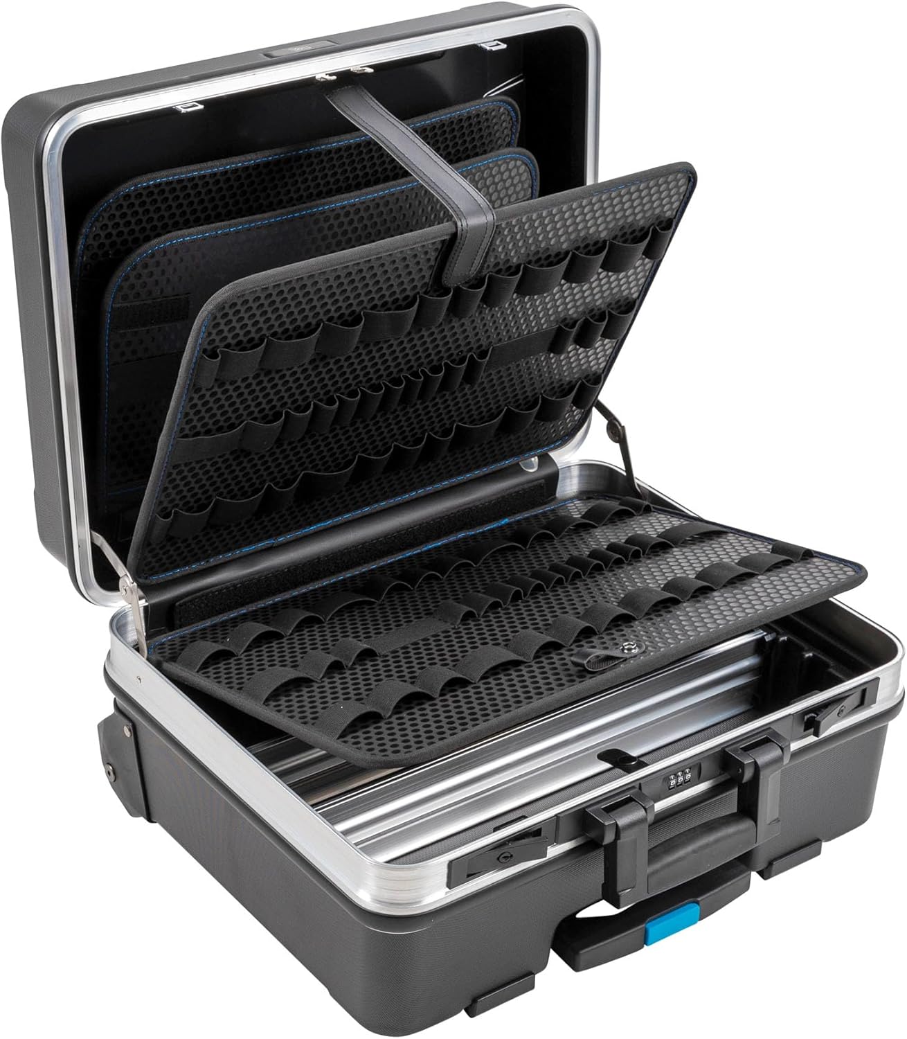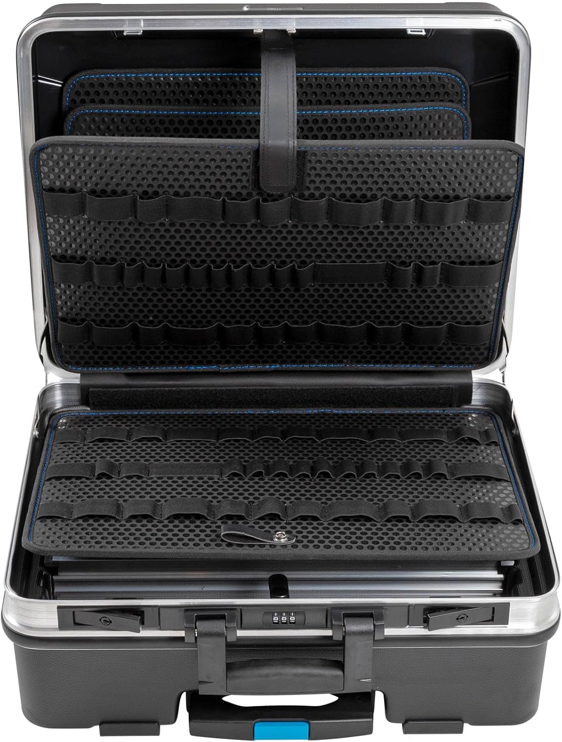 - Stabiler Werkzeugkoffer mit Teleskopgriff und Rollen für reisende Handwerker. Flexible Innenausstattung: insgesamt 111 Werkzeugschlaufen sowie ein variables Alu-Trennsteg-System in der Bodenschale