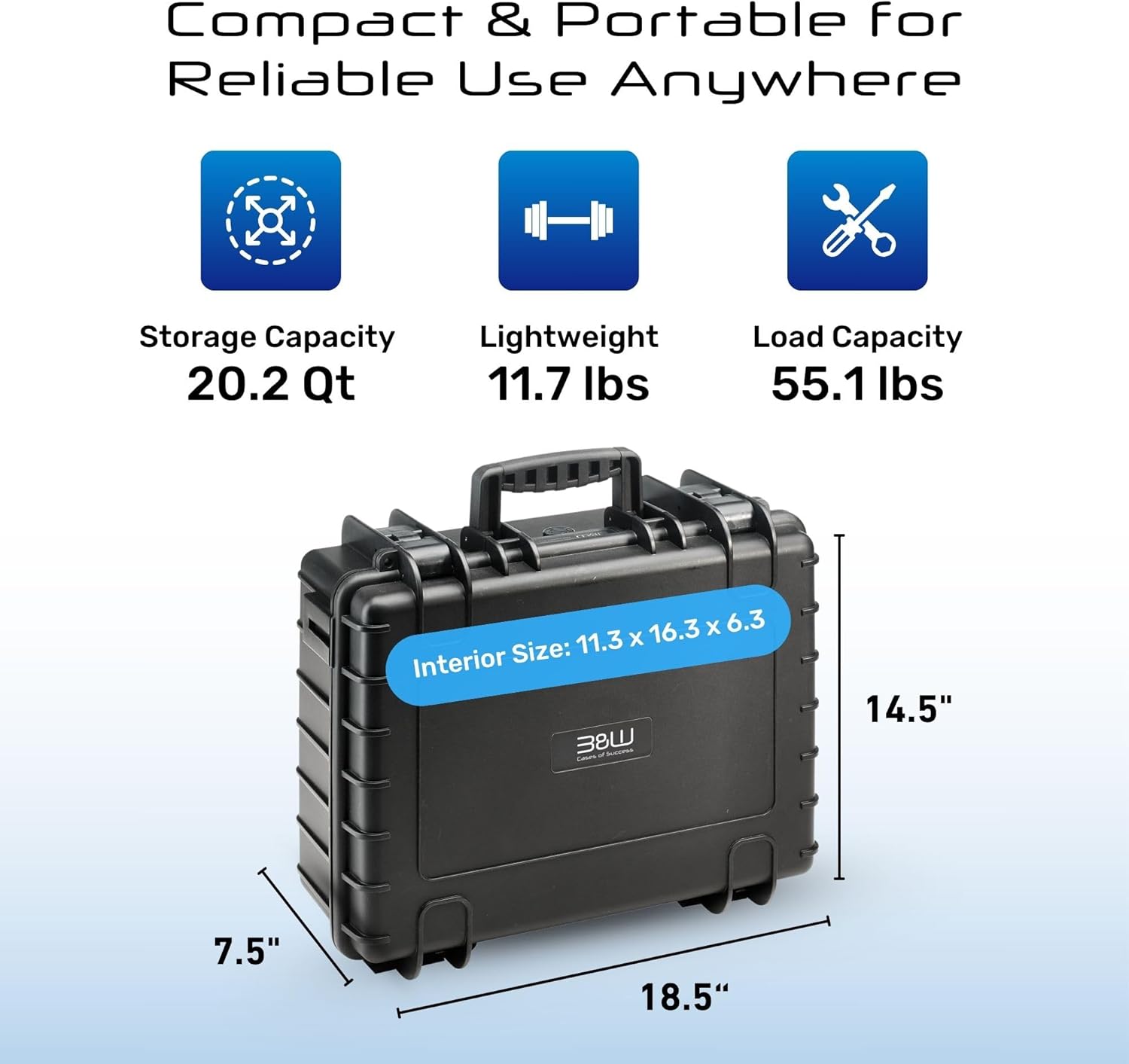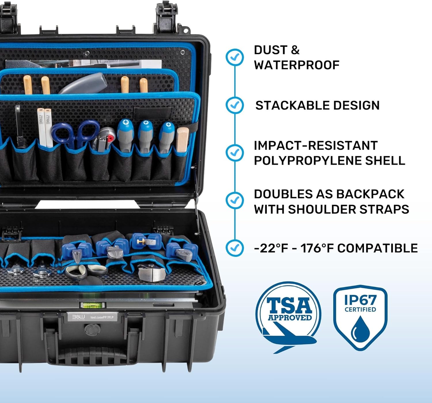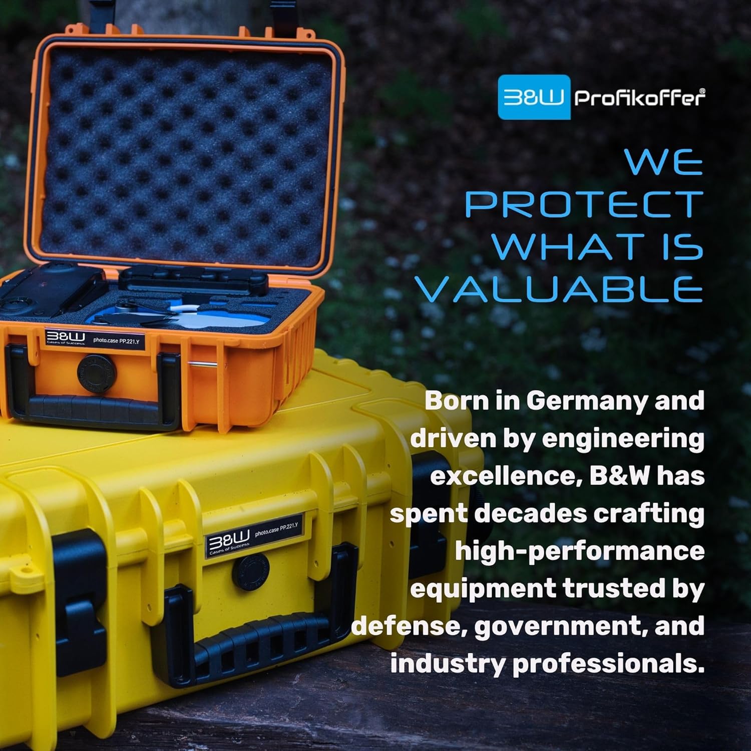 - Extrem robuster Werkzeugkoffer von B&W International aus schlagfestem Polypropylen (PP): unverwüstlich| stapelbar | spritzwassergeschützt | temperaturstabil von -30 °C bis +80 °C | flugtauglich dank automatischem Druckausgleichventil