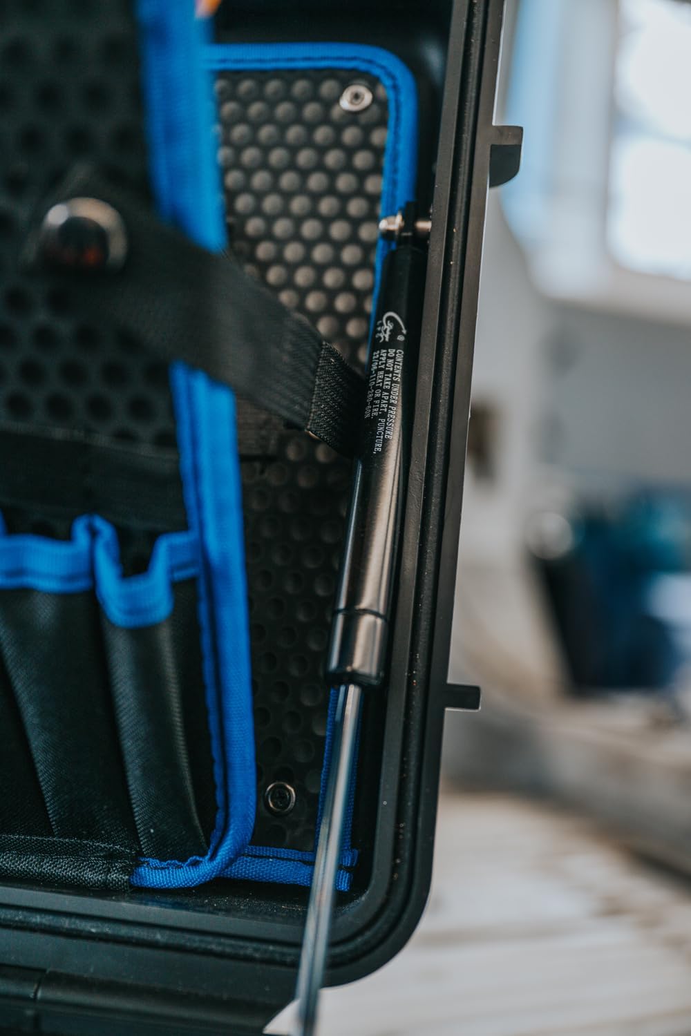 - Das Besondere an dieser Werkzeugbox sind die Gasdruckfedern am Deckel. Durch die Gasfedern lässt sich der Deckel ganz einfach öffnen und schliessen