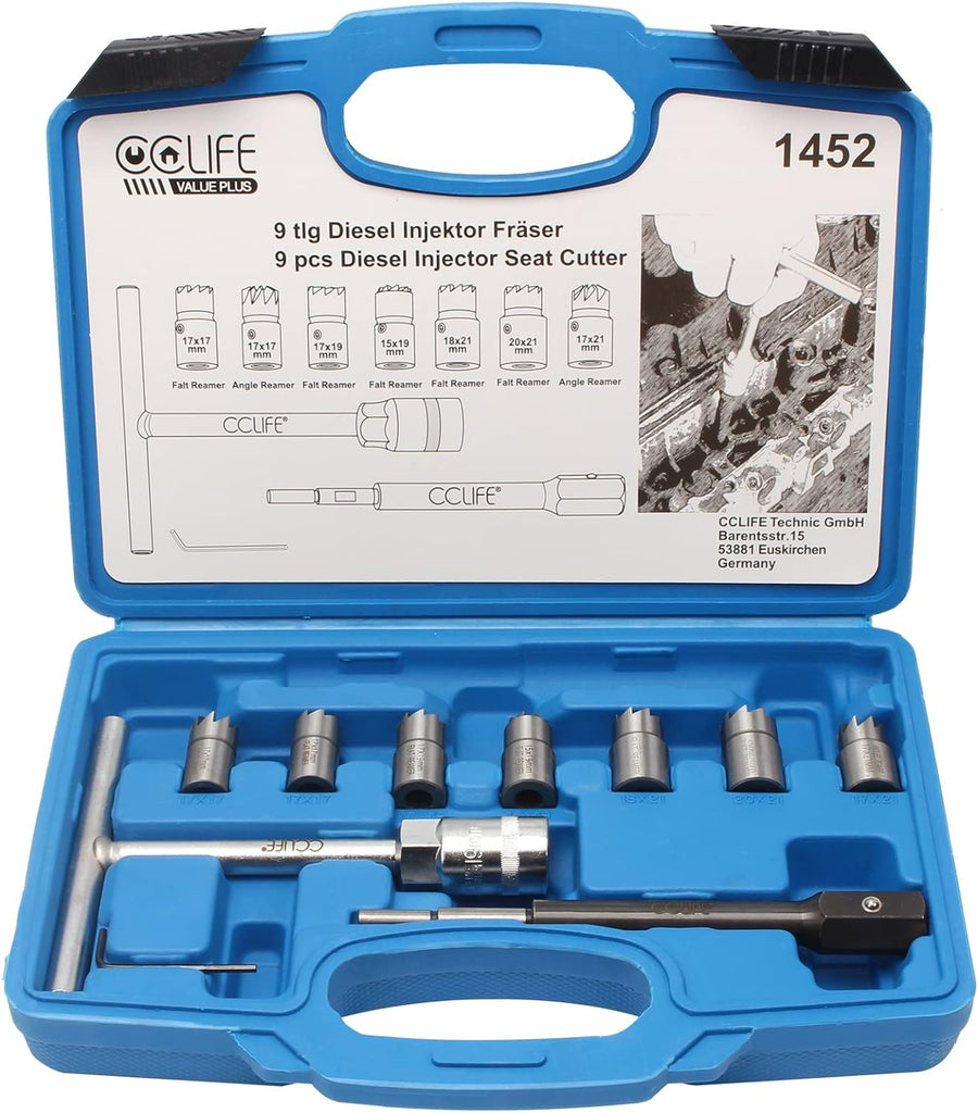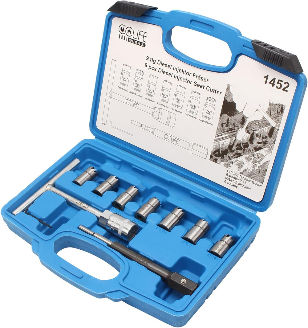 - Dieses Diesel Injektor-Fräserset eignet sich für die Reinigung und Ausbesserung der Dichtflächen an Injektoren und im Zylinderkopf
