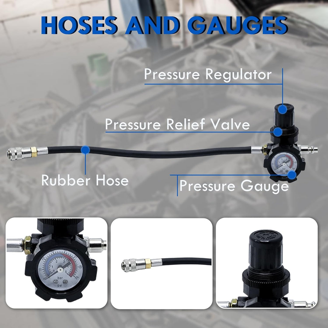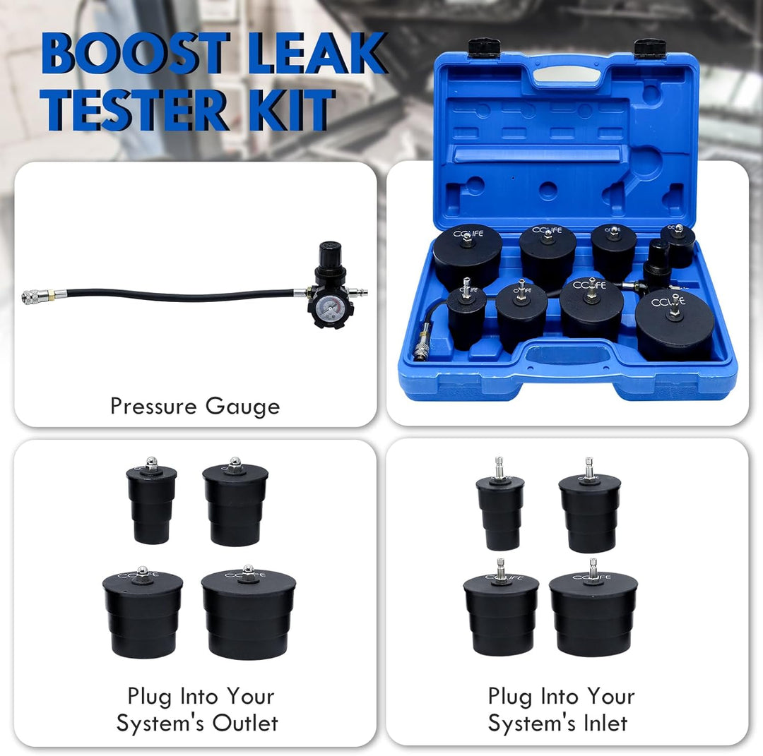 - geeignet für alle Ladedrucksysteme mit geschraubten Schlauchanschlüssen, für Abgasturbolader-, G-Lader- und Kompressorensysteme; auch geeignet für den Einsatz von Lecksuchmitteln